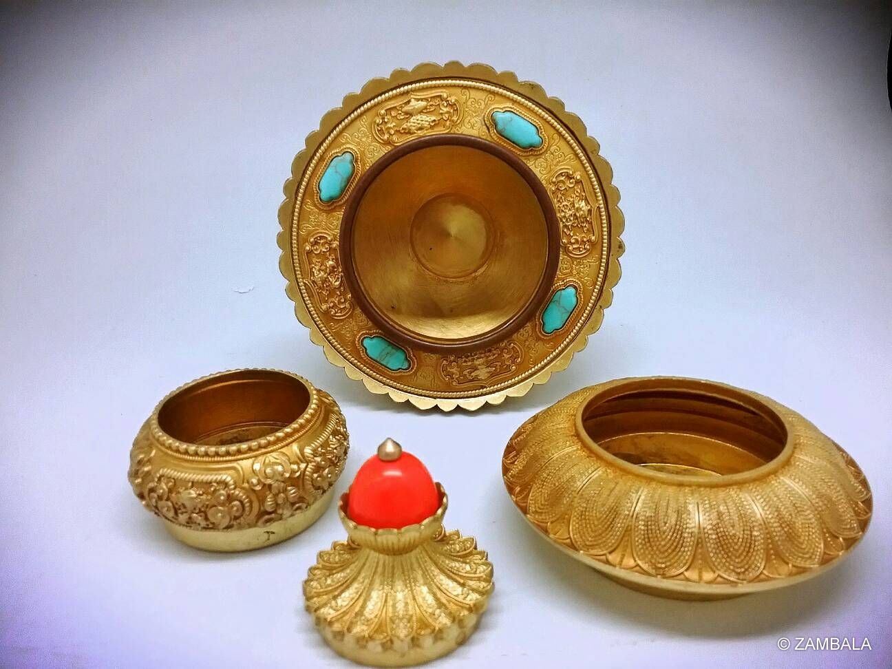 Material: copper inlaid with crushed gemstones