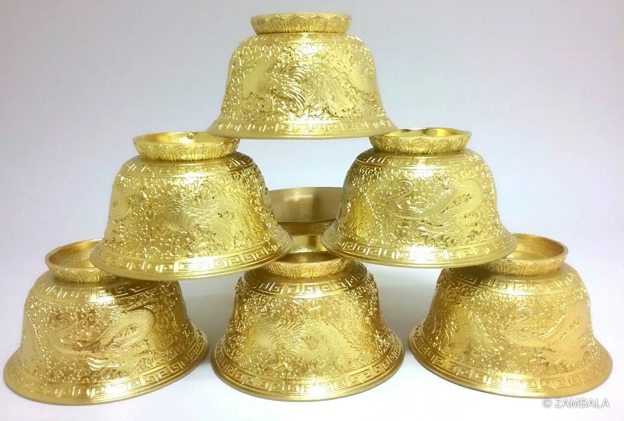 - **Seven Offerings**: The seven offering cups are primarily used to offer **water, flowers, incense, lamps, ointments, and fruit**, symbolizing sincere offerings to the Buddhas and Bodhisattvas.