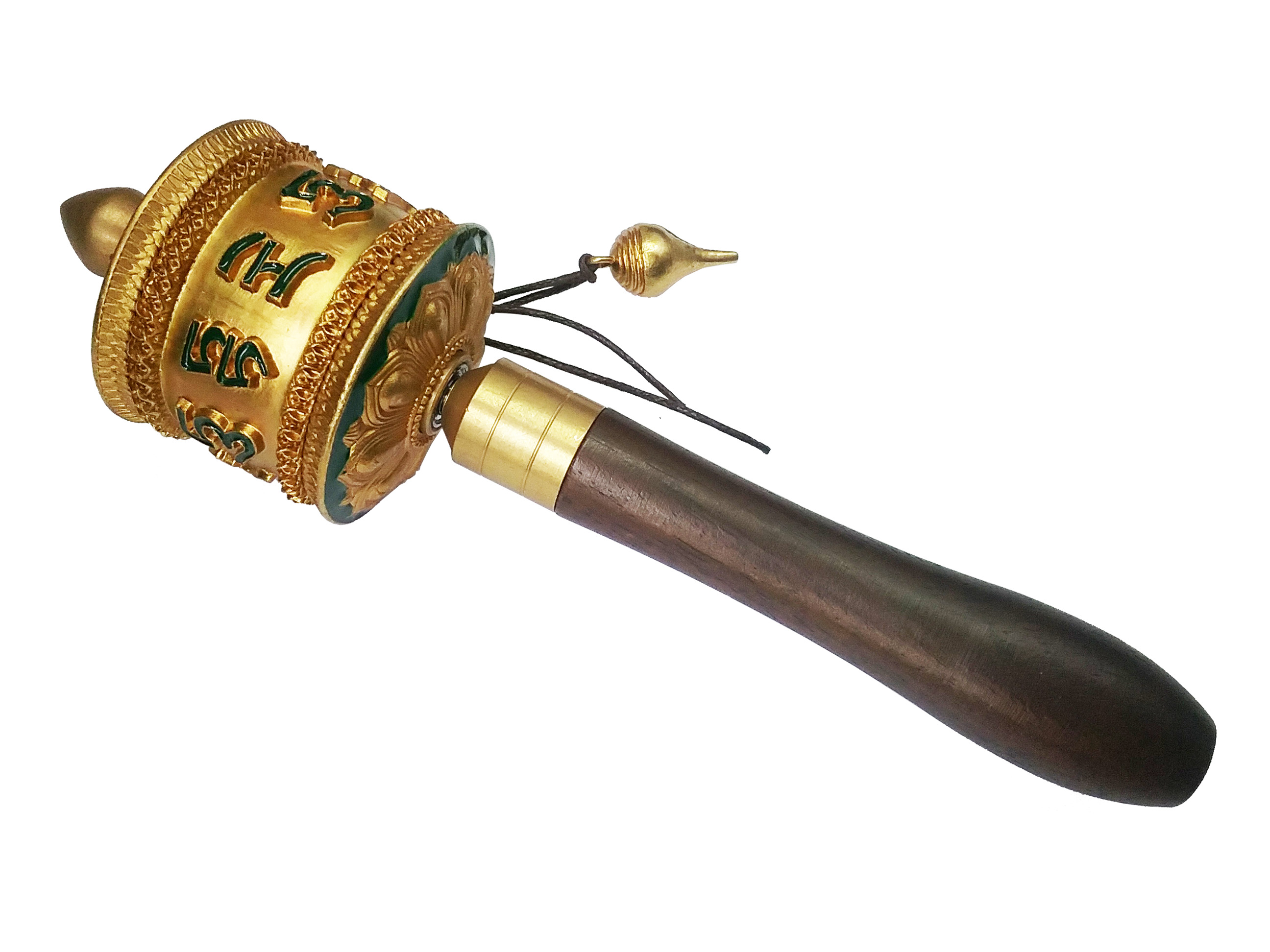 The hand-cranked prayer wheel is a very important and historical instrument in Tibetan Buddhism. The prayer wheel, also known as the "prayer cylinder", is called the "Mani prayer wheel" (མ་ནི་སྐུ་སྒྲུབ།, *mani khorlo*) in Tibetan. Its main purpose is to accumulate merit by chanting scriptures by turning the prayer wheel.