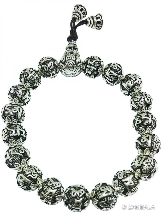 | Sterling Silver Six-Character Great Bright Mantra beads hand mala 9mm |