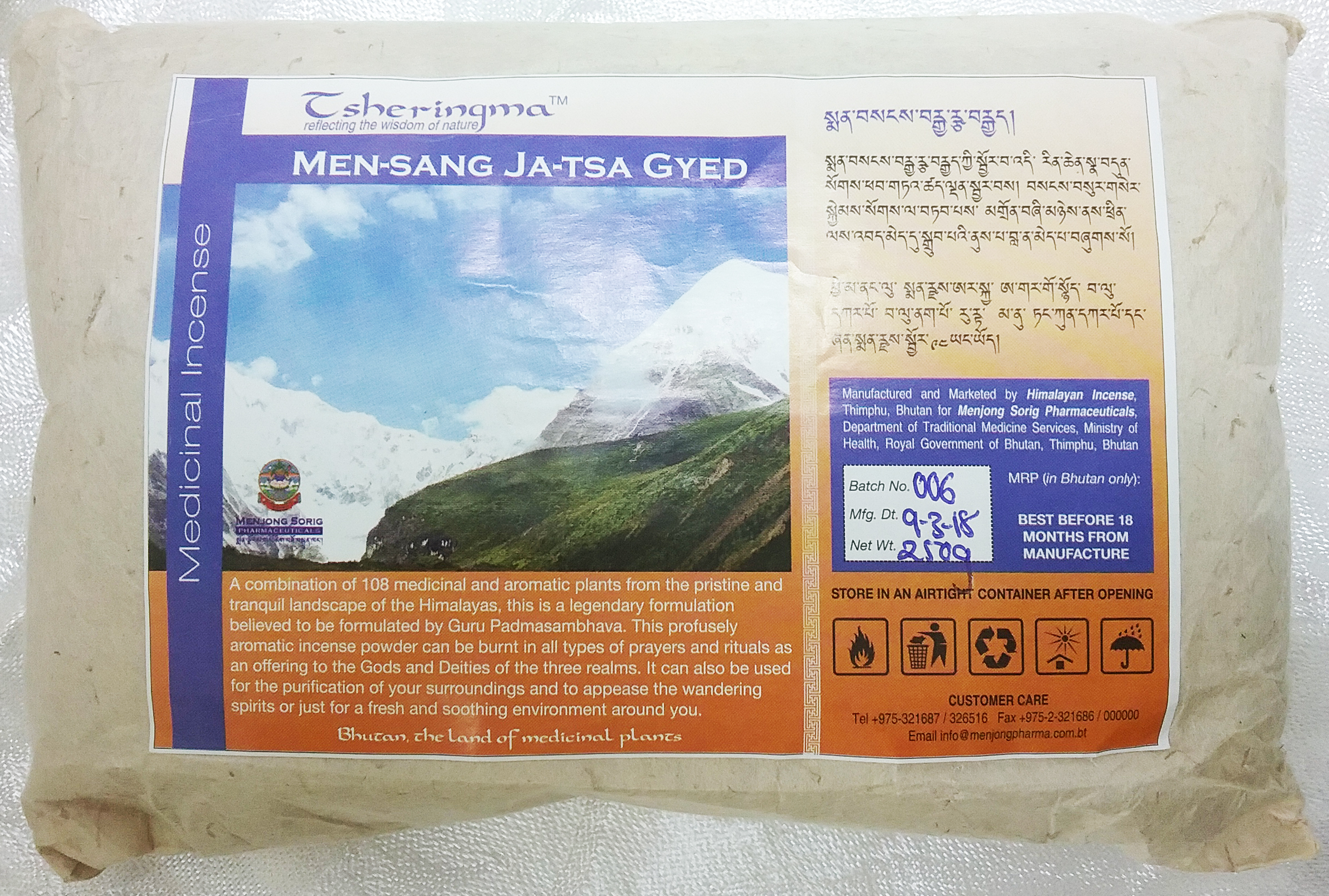 A combination of 108 medicinal and aromatic plants from the pristine and tranquil landscape of the Himalayas, this is a legendary formulation believed to be formulated by Guru Padmasambhava. This profusely aromatic incense powder can be burnt in all types of prayers and rituals as an offering to the Gods and Deities of the three realms. It can also be used for the purification of your surroundings and to appease the wandering spirits or just for a fresh and soothing environment around you.