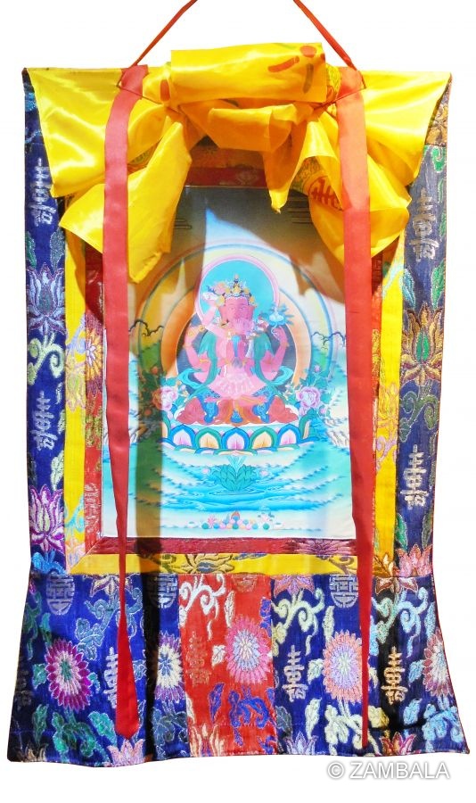 Red Kuan-Yin hand painted thanka