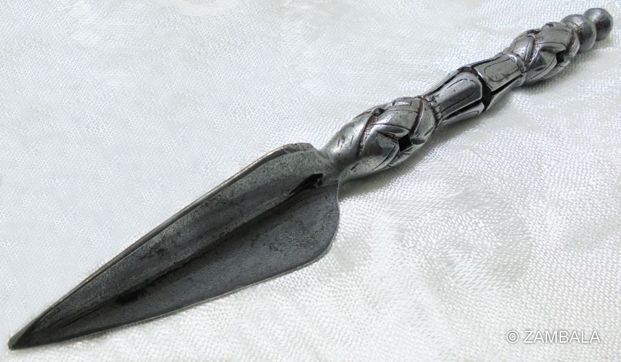 Phurba is used symbolically to "subdue" or transcend obstacles and hindrances.Materials of Construction:Metal and Gemstones: Phurba is crafted from metals and may be adorned with various gemstones. These gemstones symbolize the sacredness and power of the ritual tool.