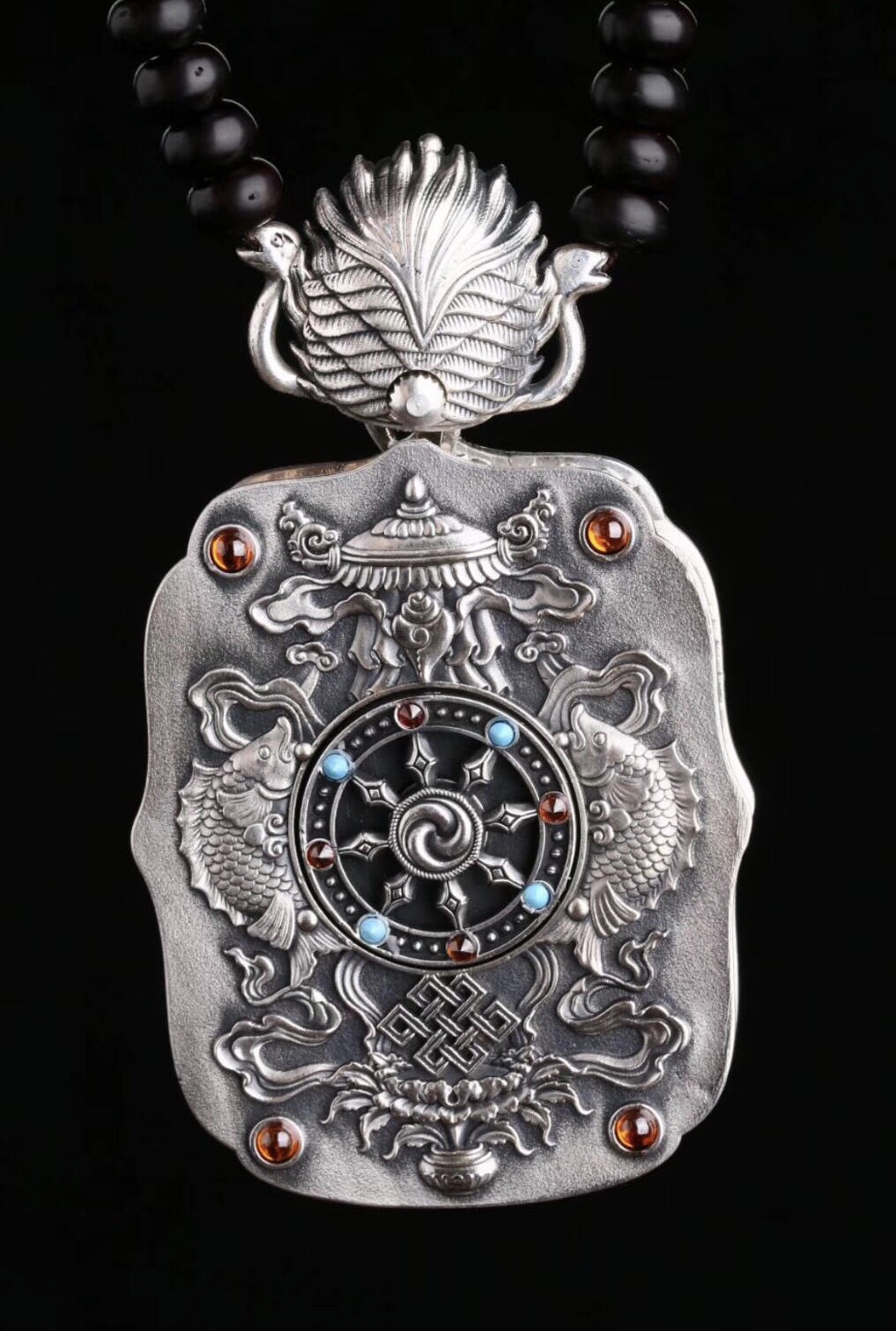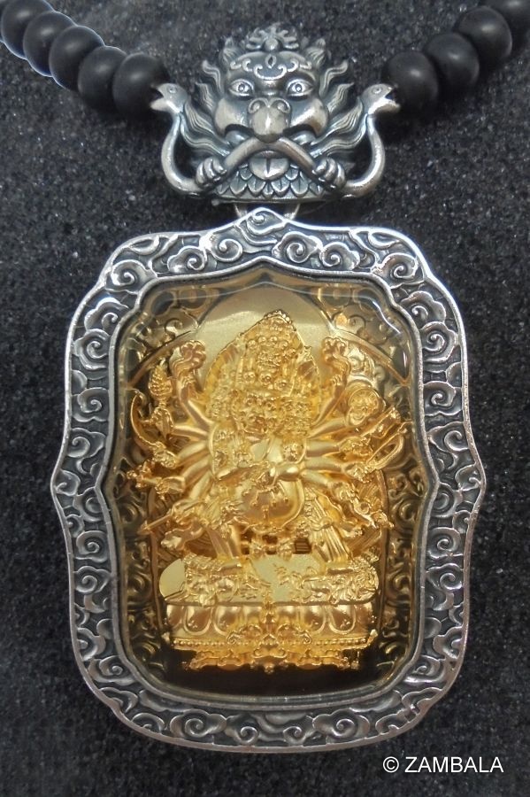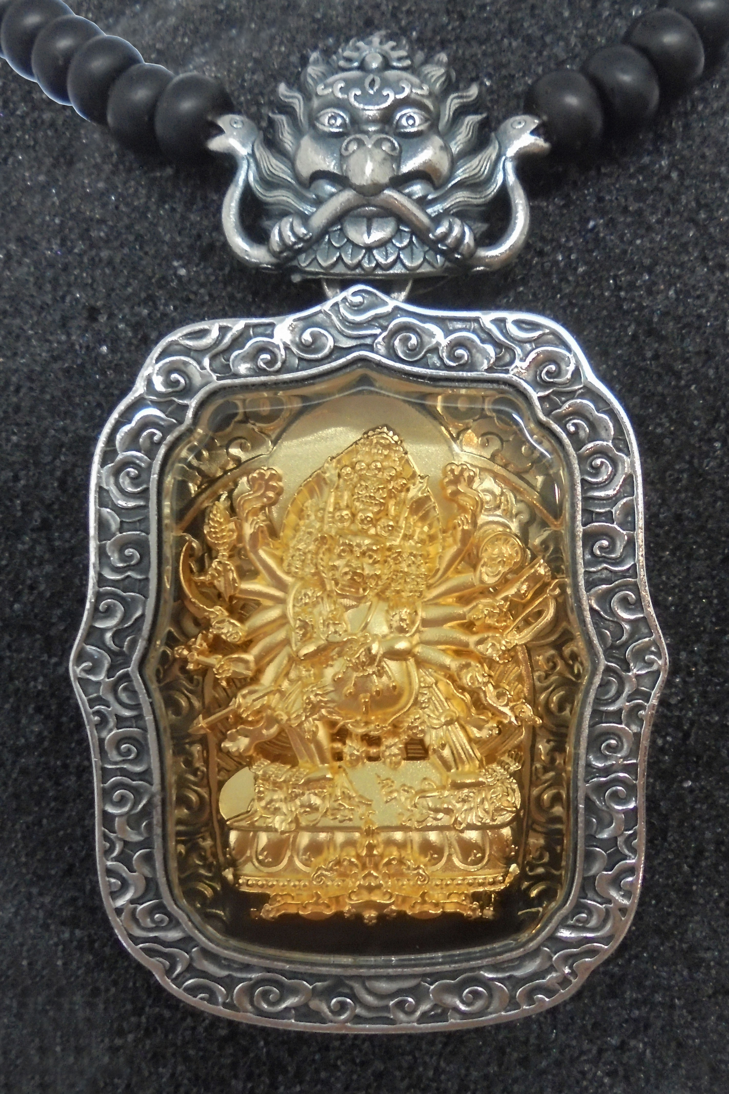 Sterling Silver. 8Aus.symbol Yamantaka gilt gold statue pendant.