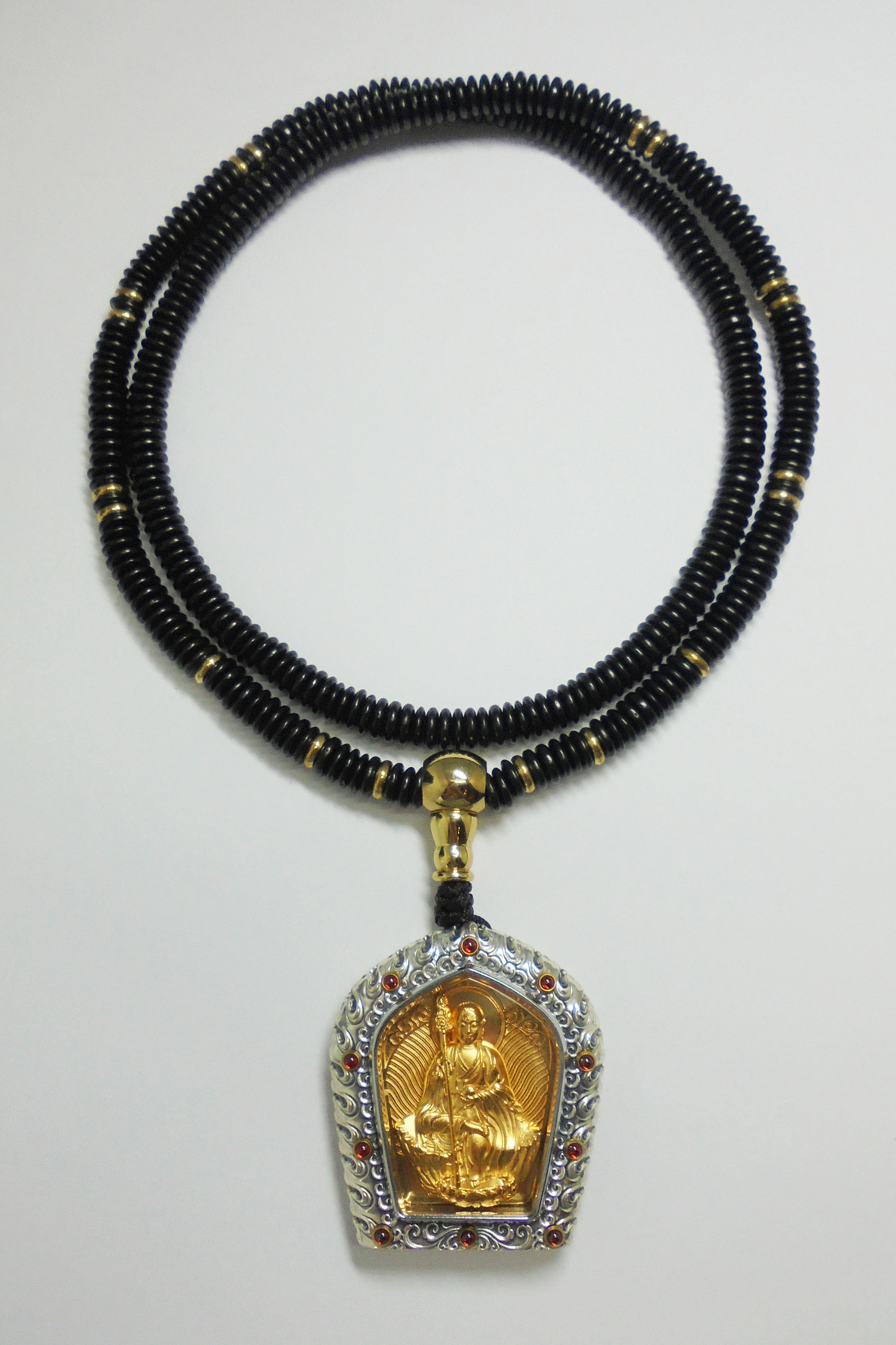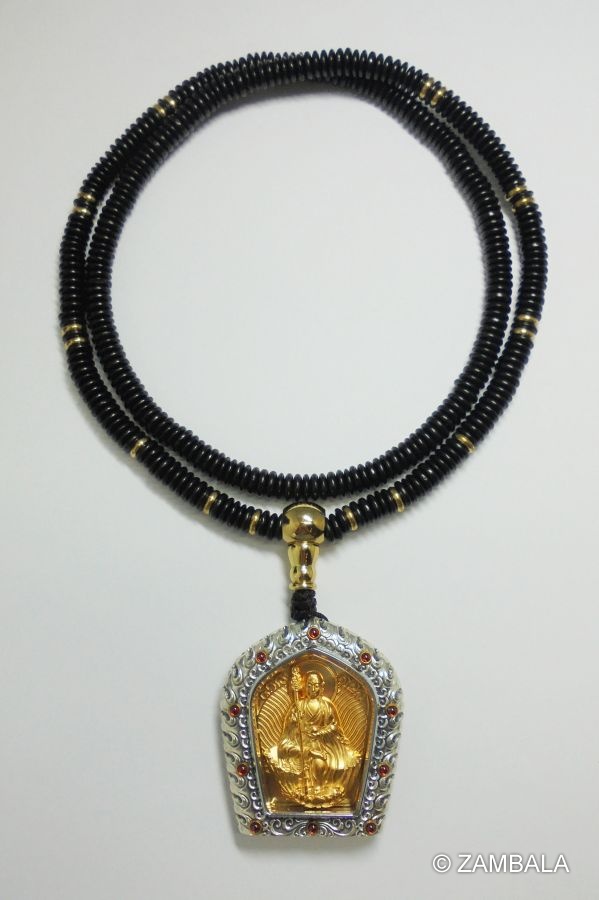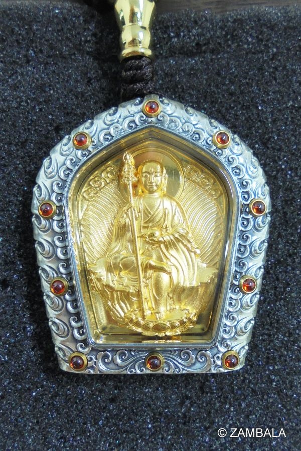 Sterling Silver. Kshitigarbha/Kalachakra gilt gold statue pendant.