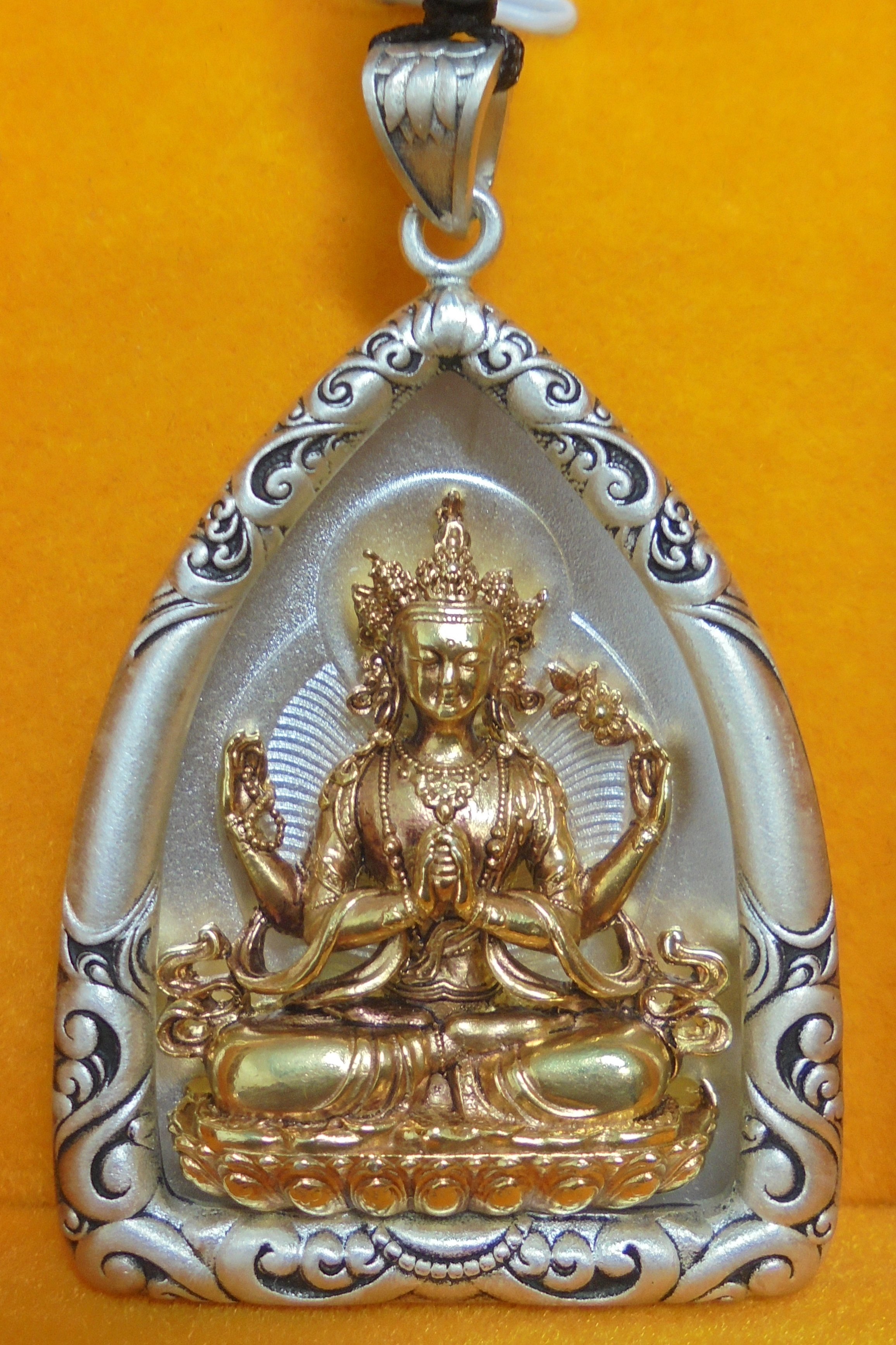 Material: Pure silver. Pendant (Four-armed Avalokiteshvara)