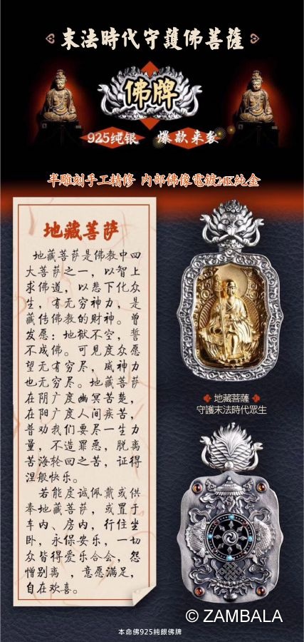 | Sterling Silver. Kshitigarbha gilt gold statue pendant. |