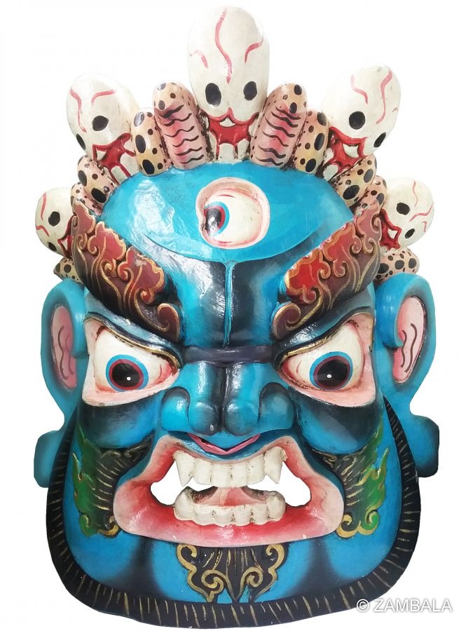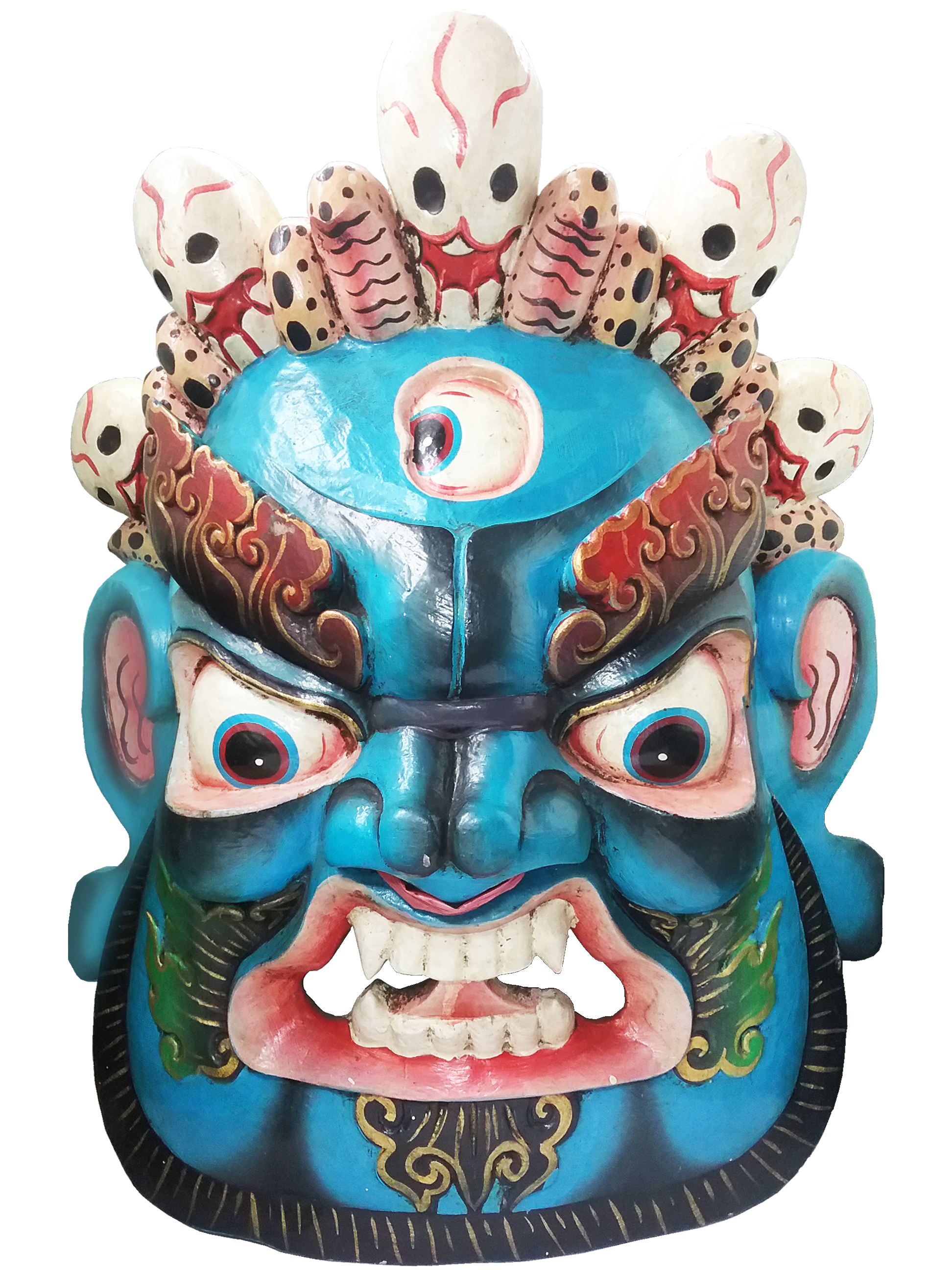 Mahakala is an important Dharma protector in Tibetan Buddhism. He belongs to the "wrathful deity". His mask is presented in a fierce and majestic image, symbolizing the power to destroy ignorance, troubles and demonic obstacles. His image usually has multiple heads, multiple arms, and is surrounded by flames, showing great power and protection, guarding the Dharma and practitioners.