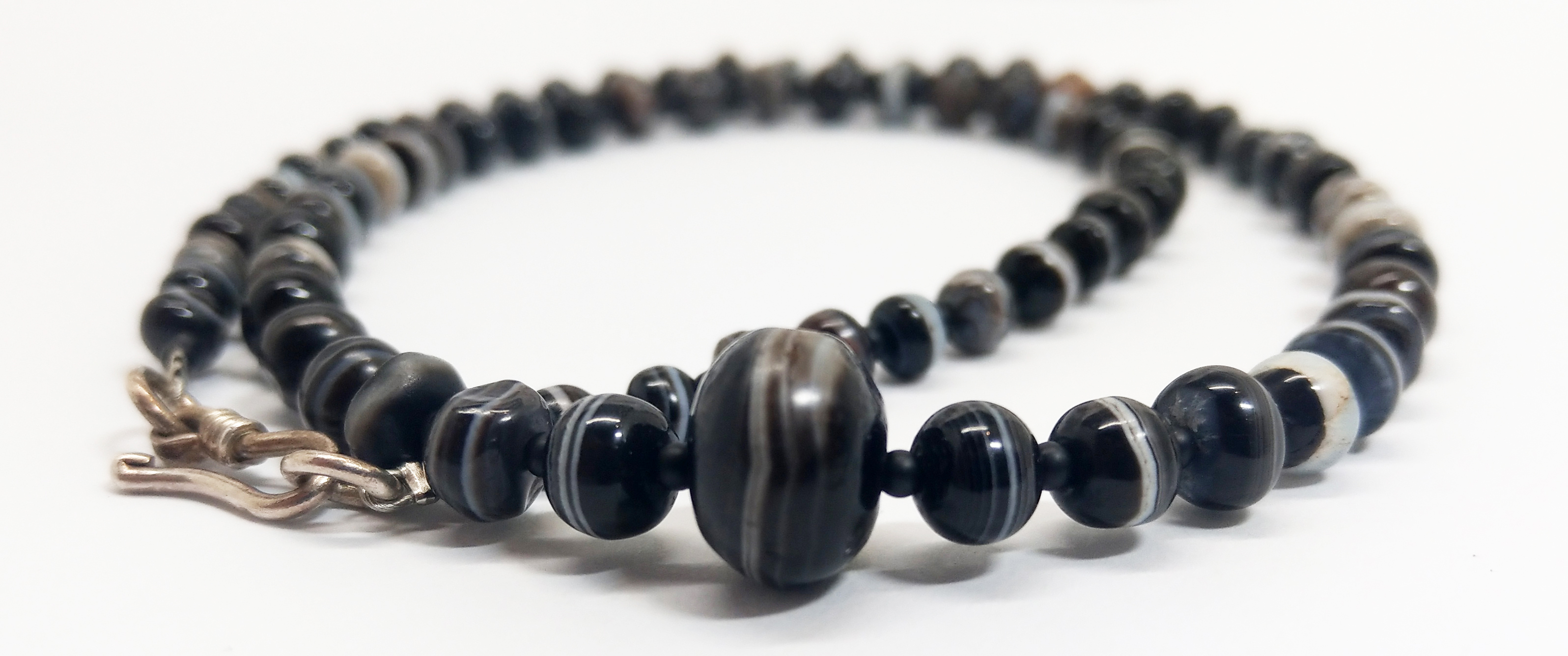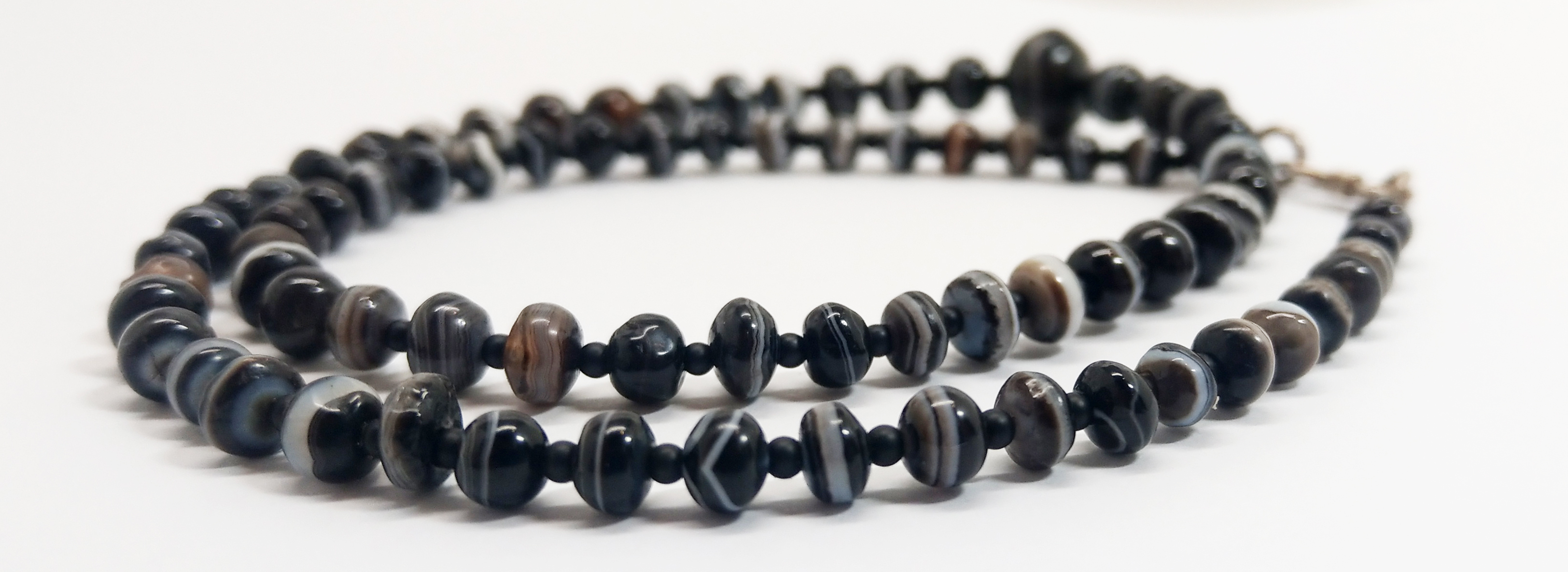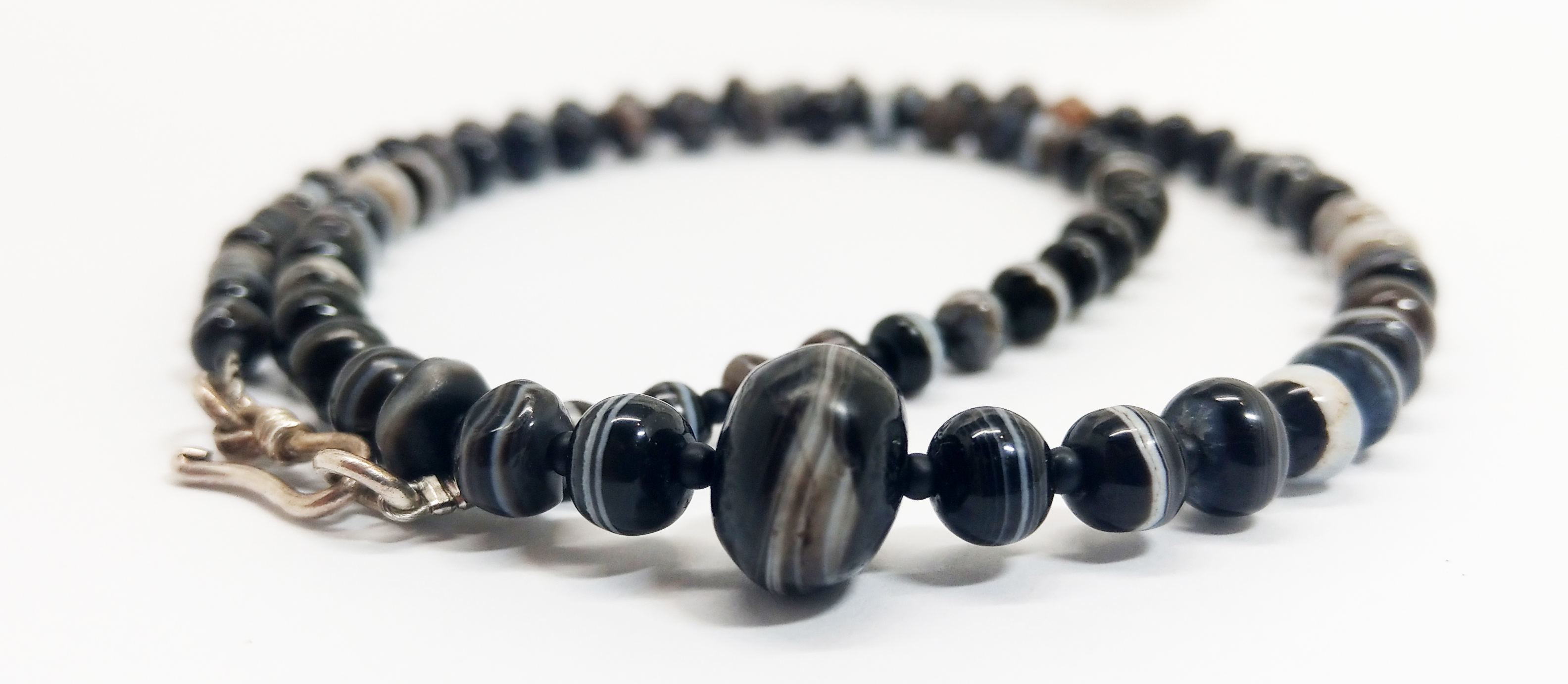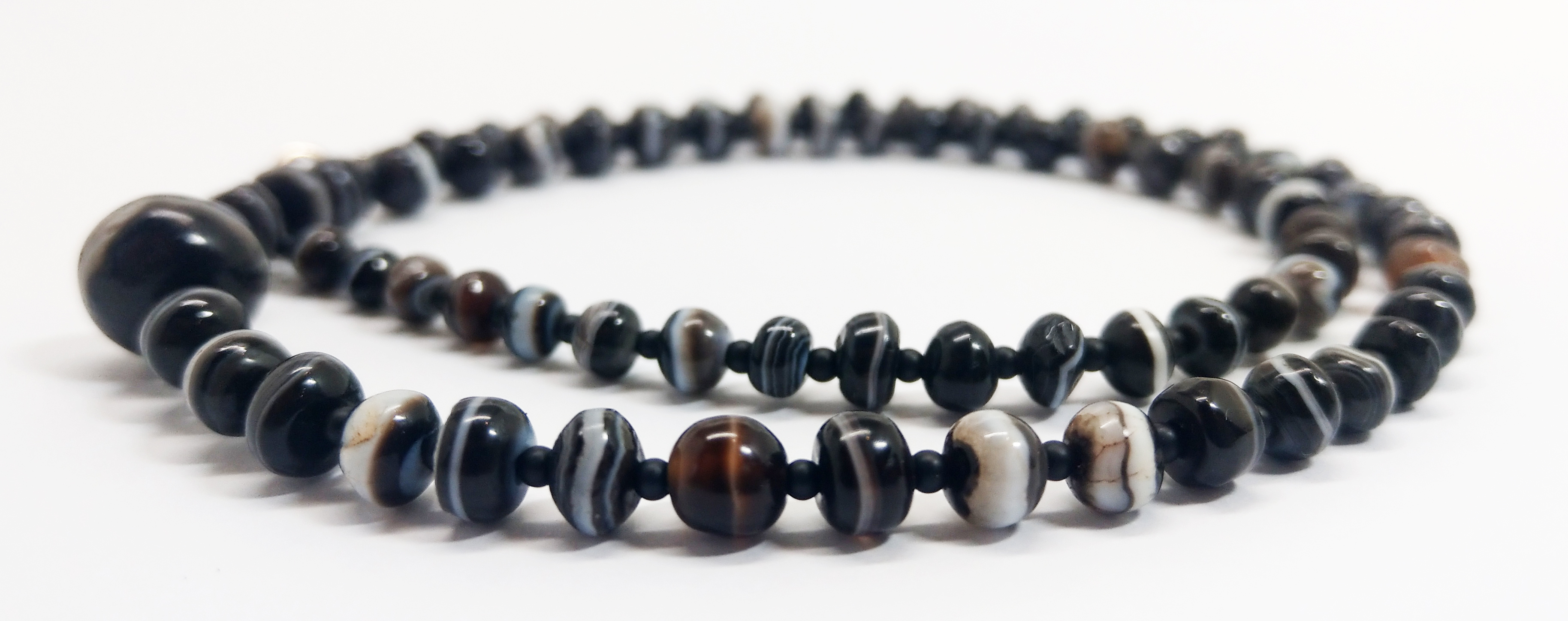 - **Appearance and Structure**: The bead is lentil-shaped or round, with a black or dark brown base color and a naturally formed white stripe (line) in the center. The stripe is regular and of moderate thickness. Strong color contrast (clear black and white) is considered superior, and larger beads are more valuable (common diameter 10-15mm).