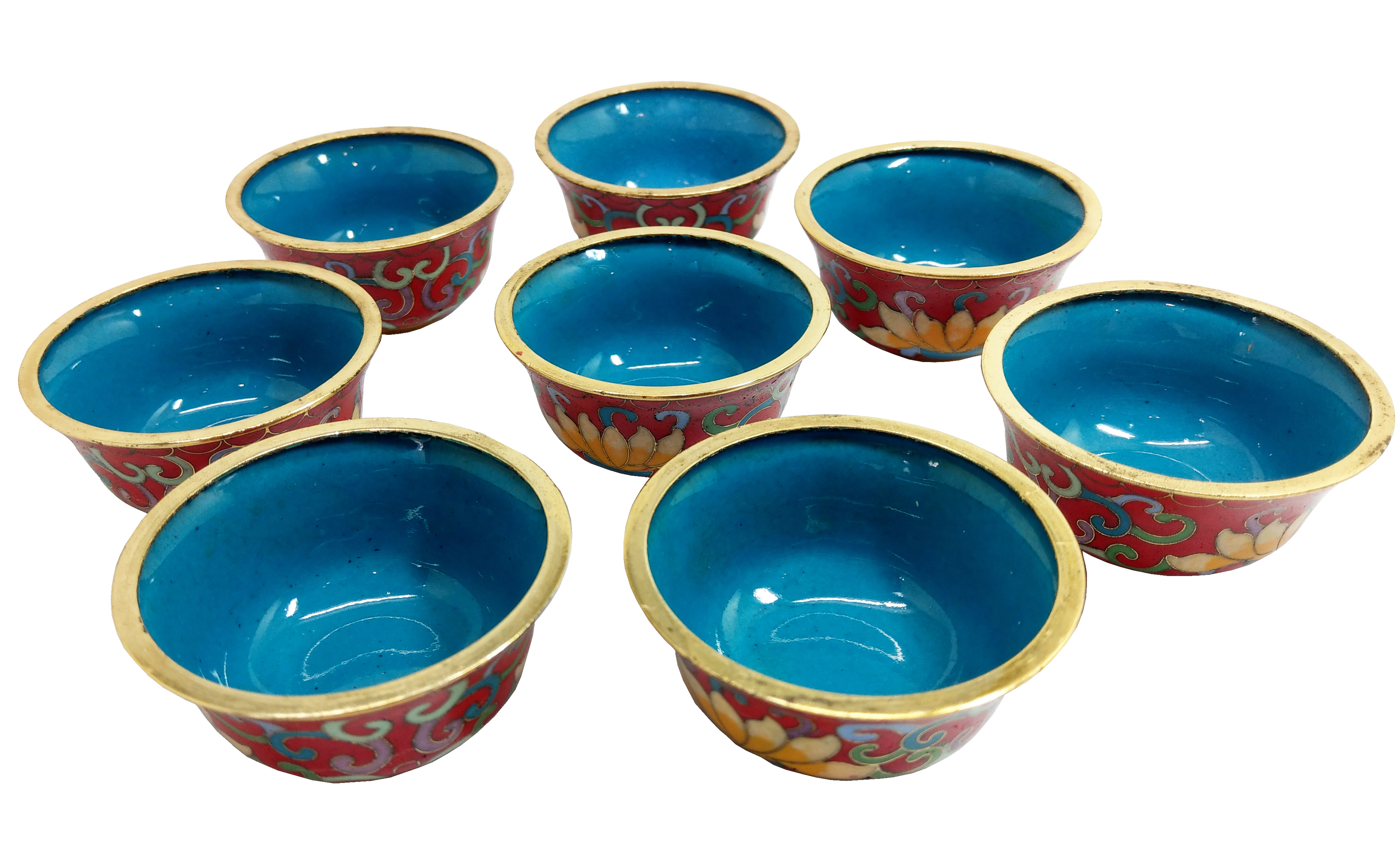 Materials: Set of Eight Small Cloisonné Offering Cups