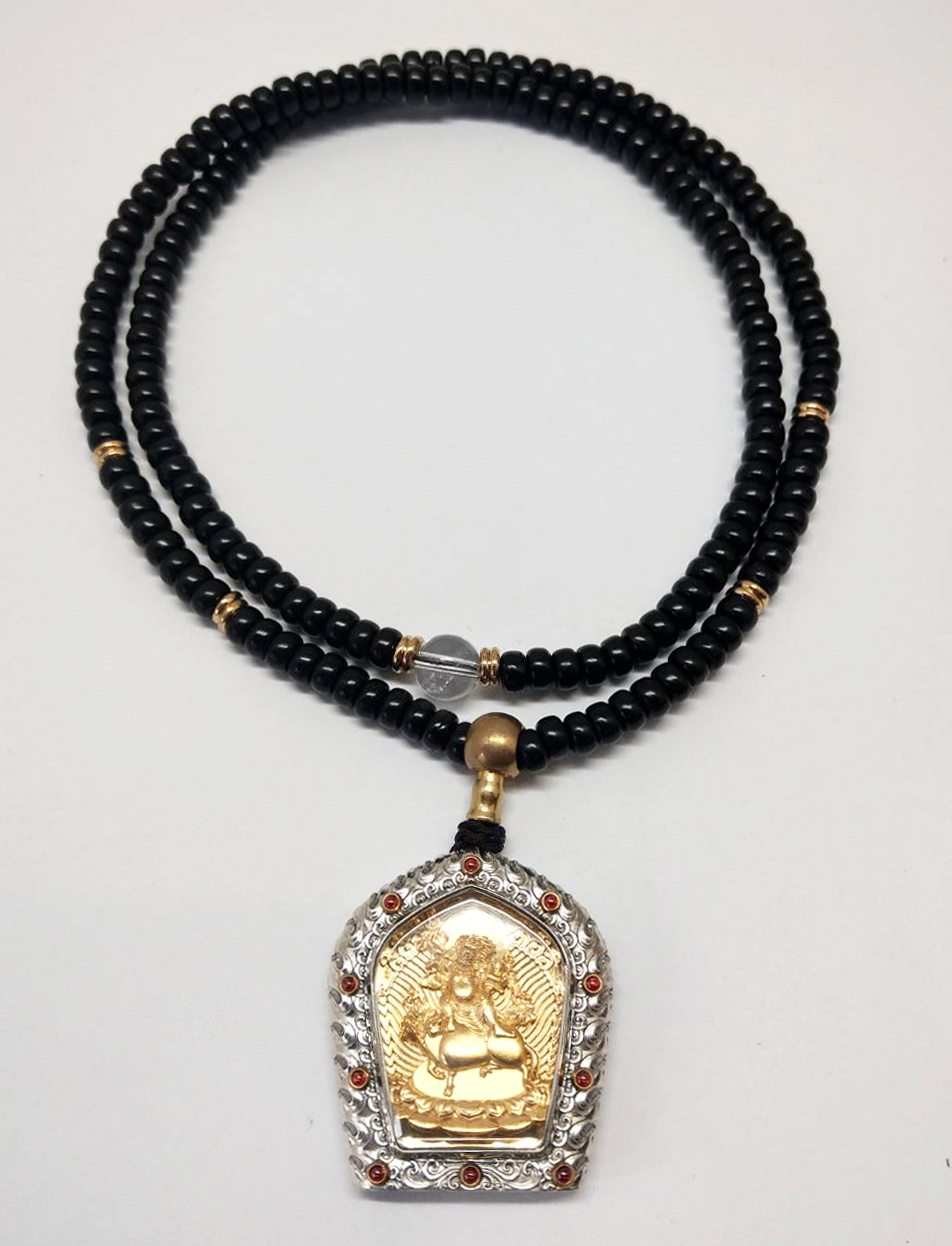 Vajra Armor, Kalachakra gilt gold statue, silver pendant.