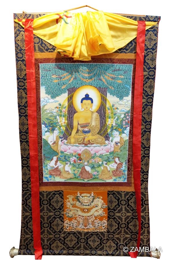 Assorted 〝Sakyamuni Buddha〝 thanka with brocade