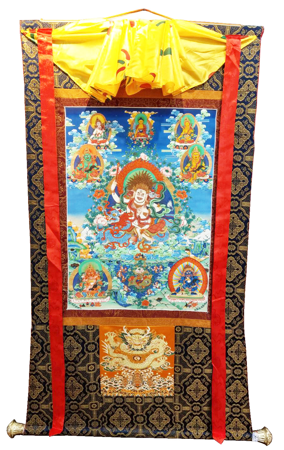Assorted Five Zambala thanka with brocade