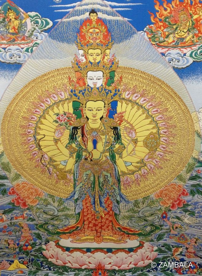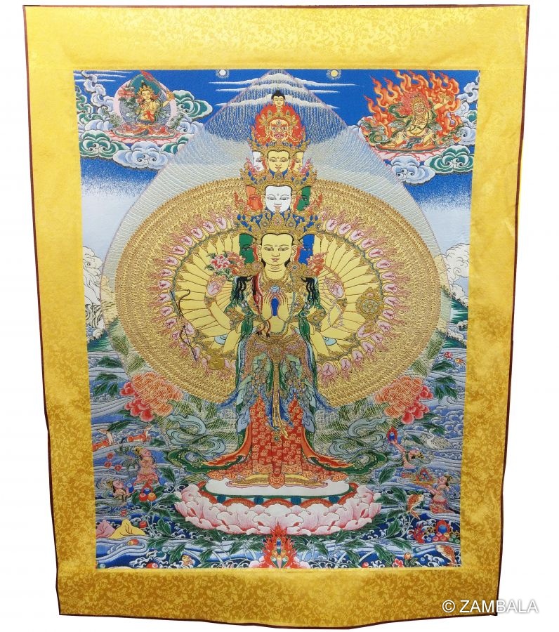 Thousand arms Kuan Yin, Embroidery, Thanka, frame
