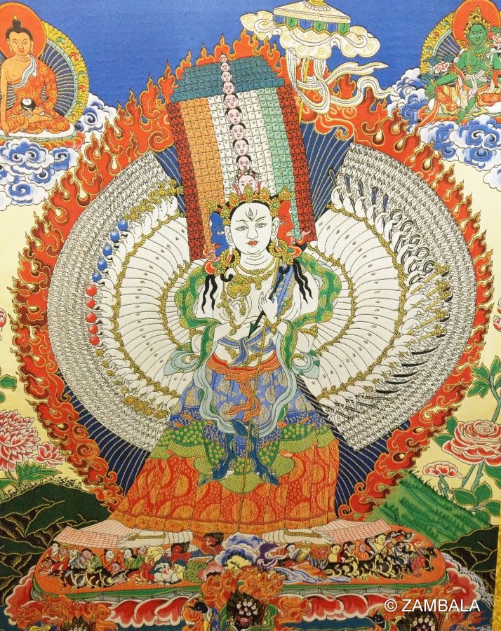 White Umbrella Goddess (Tibetan: Gdugs Kar; Sanskrit: Sitātapatrā, meaning "white umbrella") is a very powerful deity in Tibetan Buddhism (Vajrayana), and is revered as the incarnation of the Buddha's cause and the mother of all Buddhas. She is as famous as the Victory Buddha Mother and the Thousand-armed and Thousand-eyed Avalokitesvara in Tibetan Buddhism, and has the supreme power to stop all disasters and subdue demons. Her image is marked by holding a white umbrella, which symbolizes covering sentient beings with the light of the Dharma and protecting them from natural disasters, diseases, evil spells and demons.