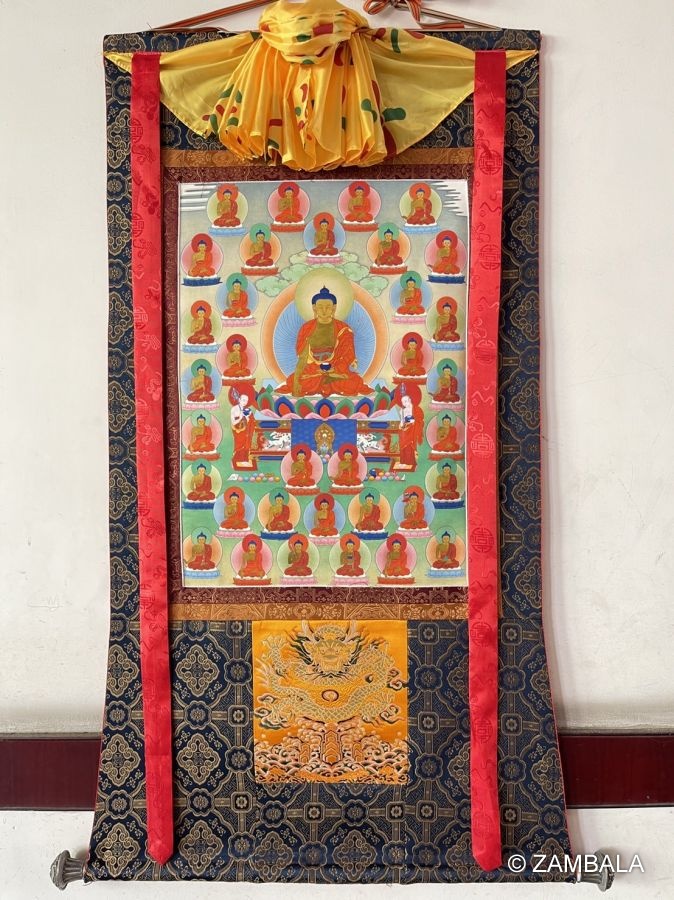 Assorted "Thirty Five Buddhas" thanka with brocade