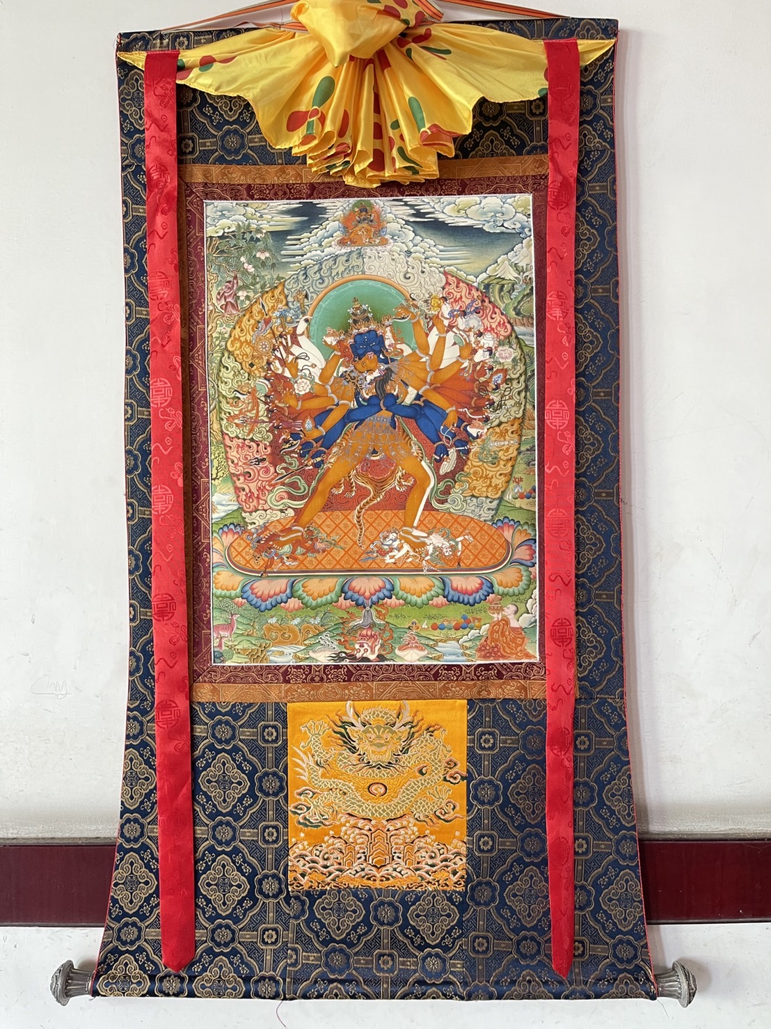 - The image of Kalachakra is usually blue, multi-faceted and multi-armed (four faces and twenty-four arms), embracing his consort "Visvamata", symbolizing the unity of emptiness and wisdom. This image reflects the Tantric transcendence of duality (male and female, time and space), pointing to the ultimate enlightenment.
