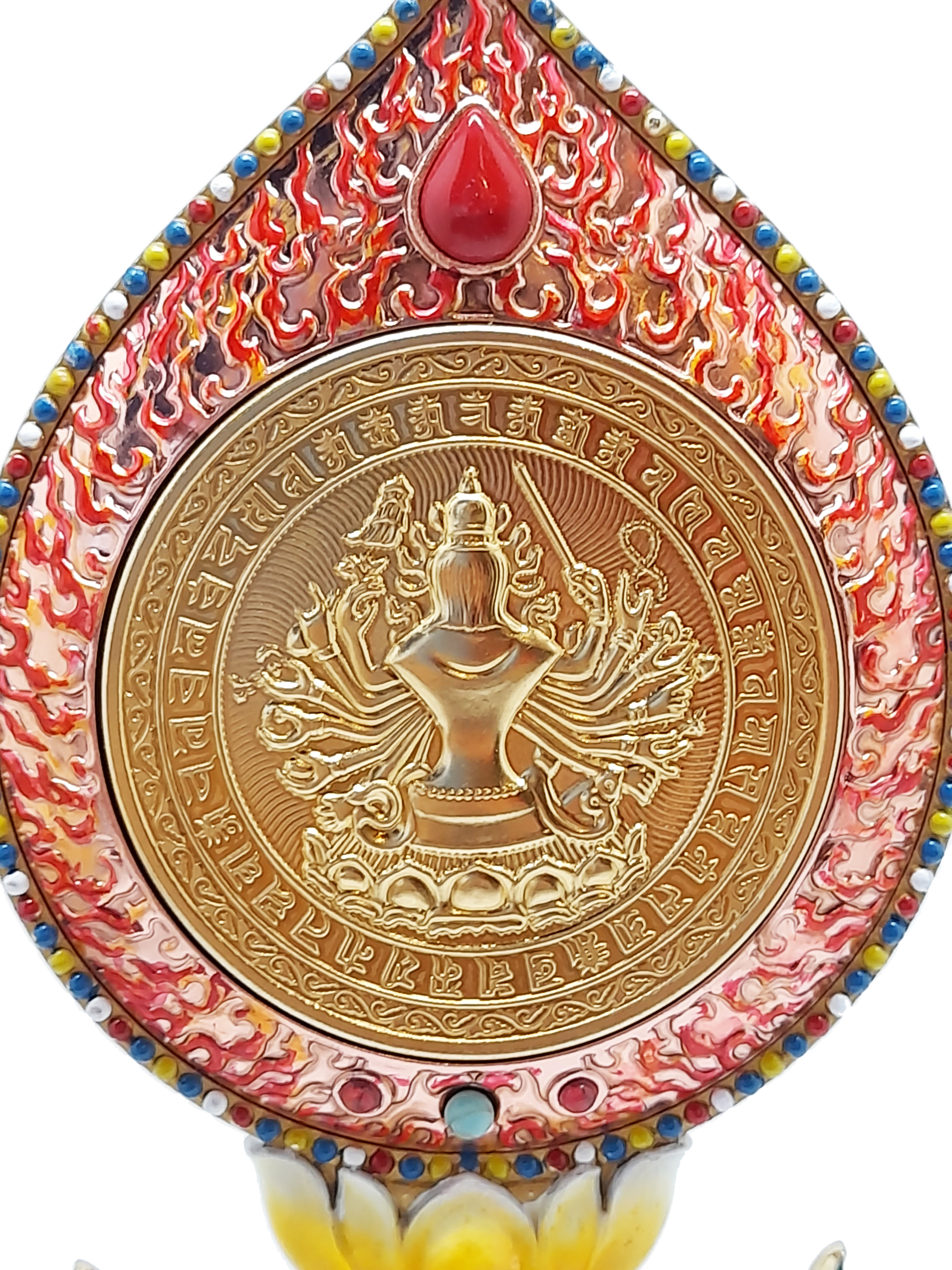 3. **Mandala and Symbolism**: The Cundi mirror itself is a miniature mandala of Cundi Bodhisattva, representing the bodhisattva's eighteen realms (body, speech, and mind). In Tantric empowerment ceremonies, it is used to impart the blessings of the Cundi Dharma, helping disciples achieve rapid enlightenment. Compared to other ritual implements (such as the vajra or rosary), the Cundi mirror emphasizes its "reflective" function, reminding practitioners to maintain a "clear mind like a mirror," reflecting all things untainted by dust.