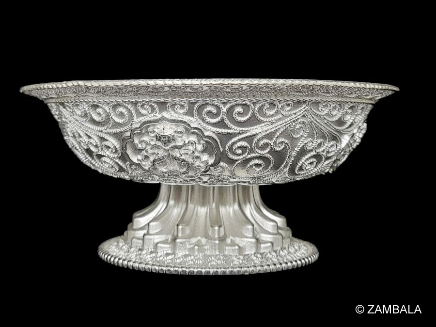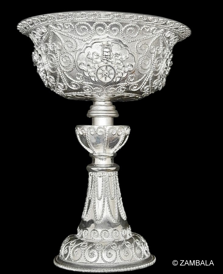 - The offering cup is usually a small container made of metal (such as copper, silver) or ceramics, mostly in the shape of a bowl or cup, with simple patterns, but sometimes auspicious patterns or mantras are engraved.