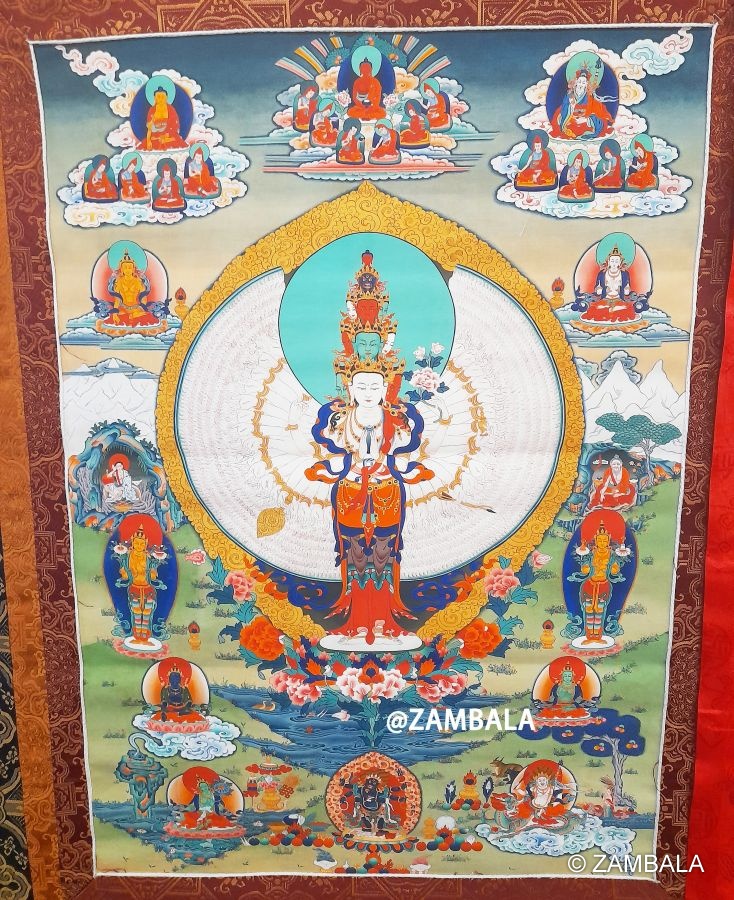 Assorted Thousand arms Kuan Yin thanka with brocade