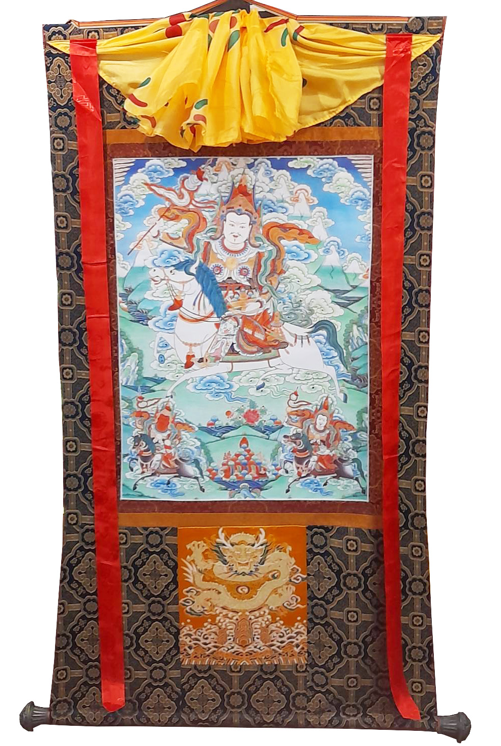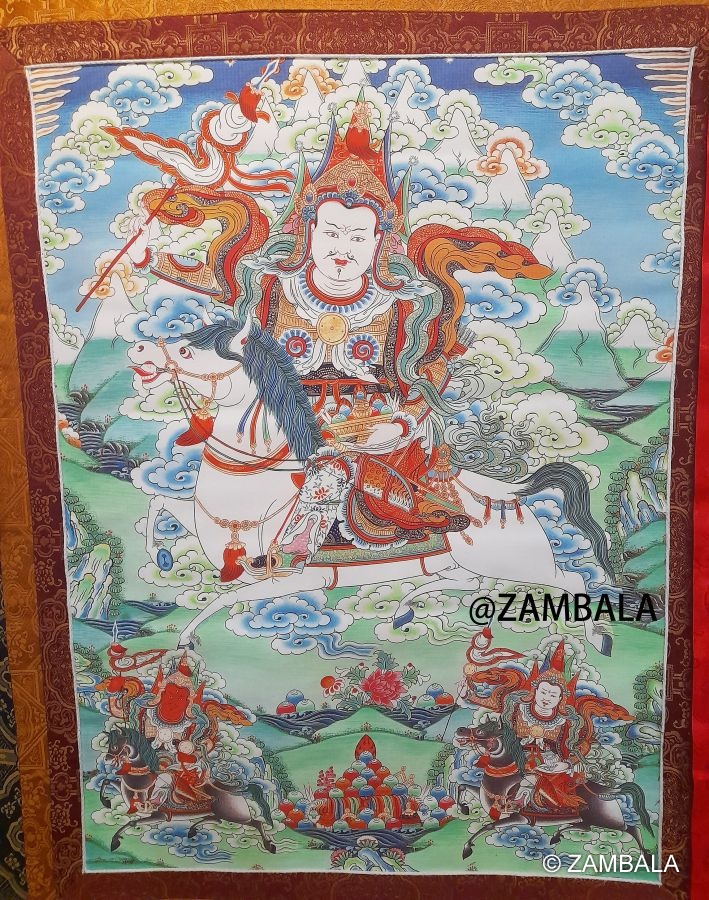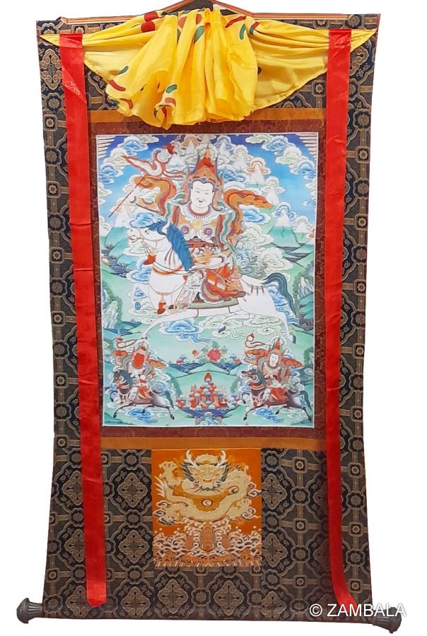 Assorted "Amne Machin dharmapāla" thanka with brocade