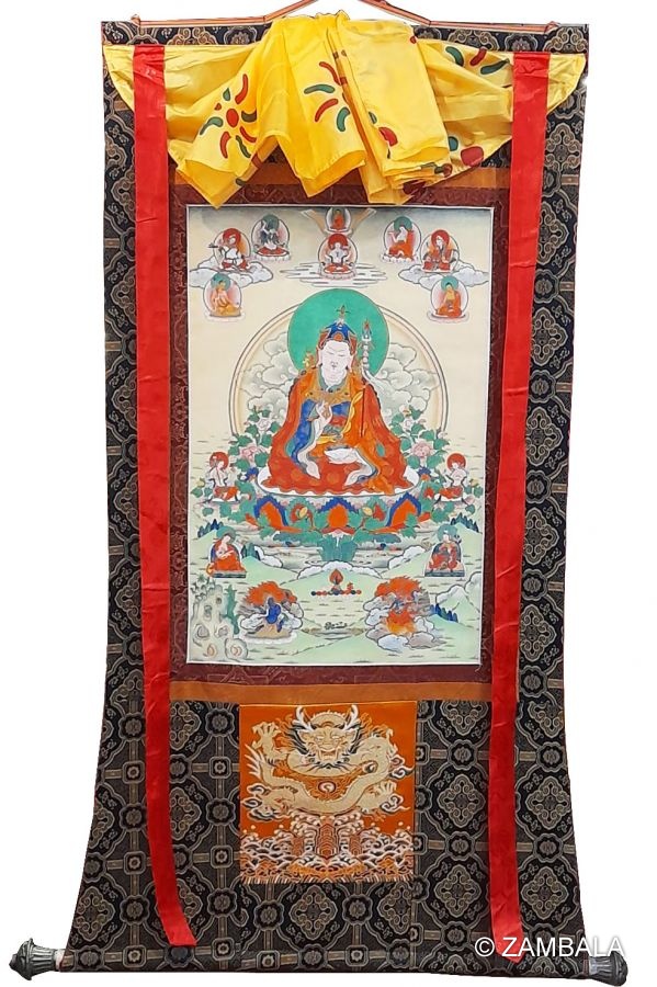 The Sakya sect absorbed the tantric elements of Guru Padmasambhava in the Lamdre Dharma, especially the guardian deities and mantra practices. His image occasionally appears in Sakya thangkas.