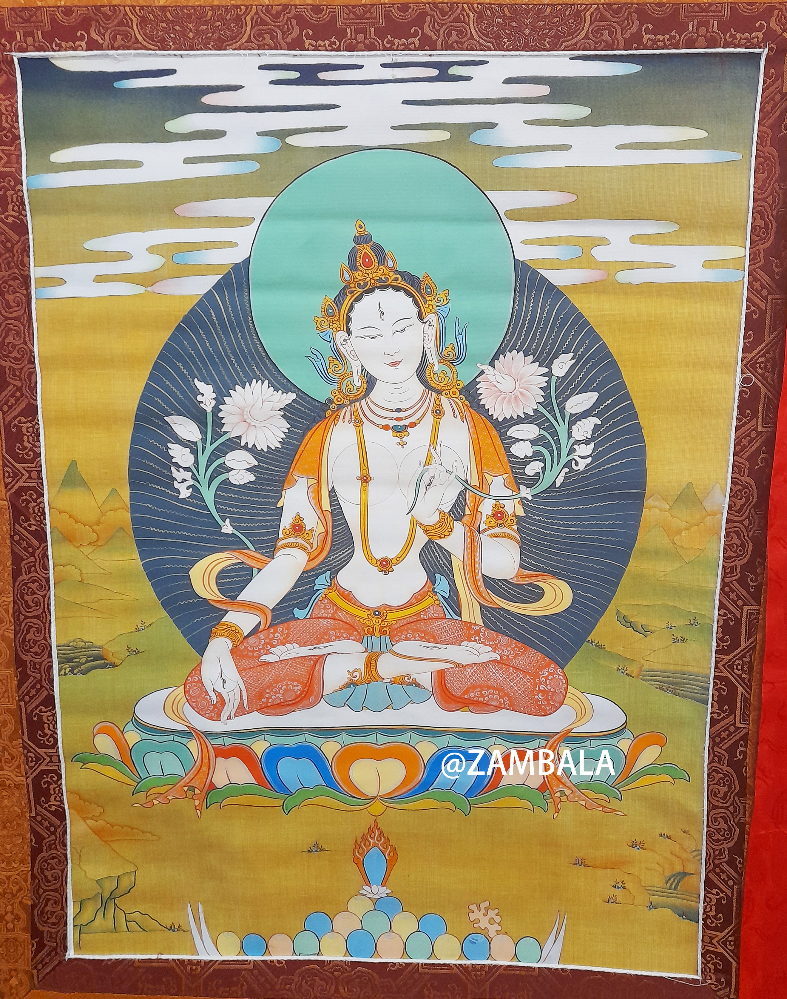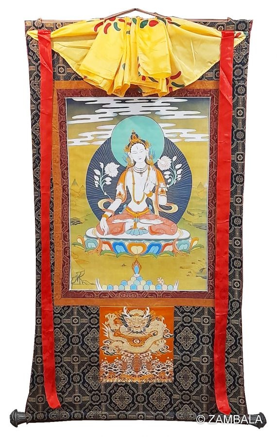 | Assorted White Tara thanka with brocade |