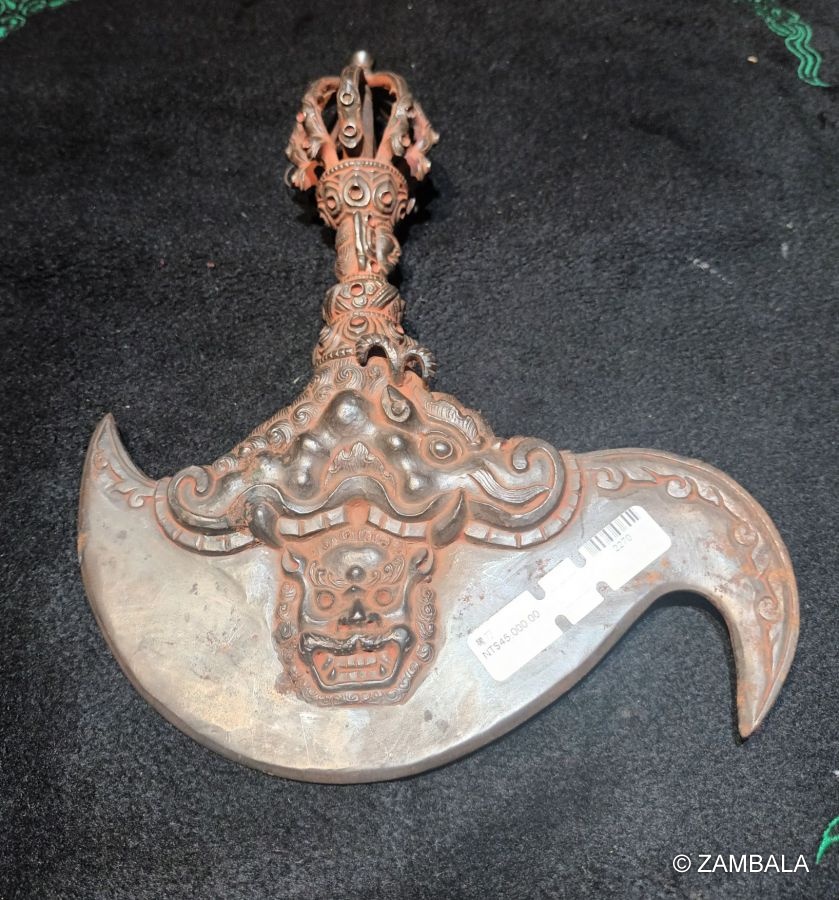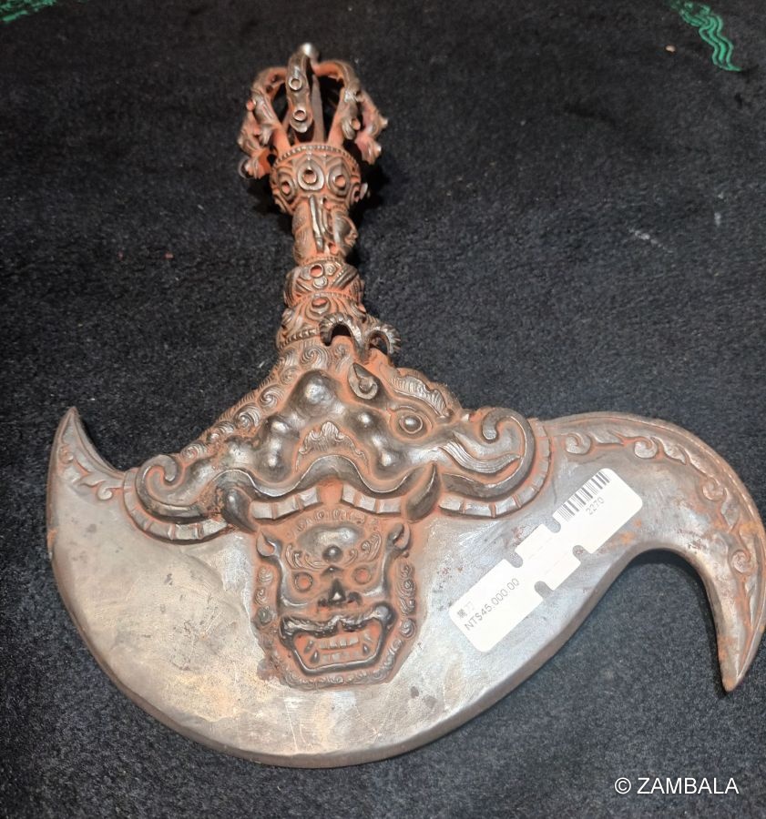 It is a common ritual implement in Tibetan Buddhism, representing the inviolability of the sacred Dharma and the heart of protecting Buddhism. For example, the statues of the Tibetan Buddhist Tiger-faced Dakini, Lion-faced Dakini, Yamantaka and Mahakala all hold axes in their arms. |