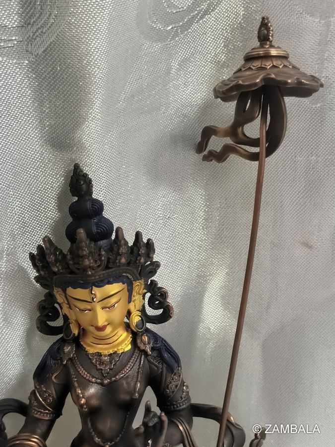 The big white umbrella covers the mother of Buddha, whose name is "Budha Agam" in Zhan Zhung and "Dugham" in Tibetan.