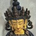 This is a female Buddha with a white body, three heads, and a small head on the head. There are countless arms around the body, and there is another eye on each arm. She holds hooks, swords, bows, lotus flowers, pestles, etc. on the outermost edge. A circle of flames; the left hand of the main arm holds a white canopy