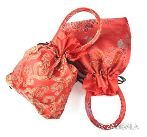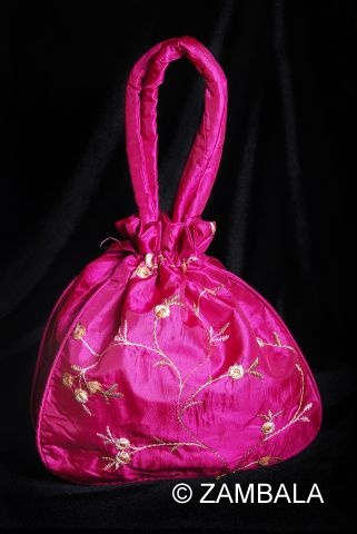 Embroided Satin Mala pouch comes in red color also.
