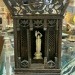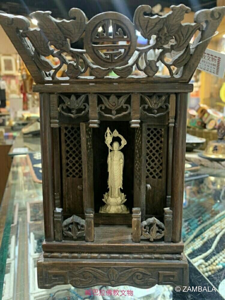 Within the crimson altar shrine, akin to a majestic mountain peak standing silently, gradually ascending in a tranquil corner of the temple. Its wooden texture is clear, seemingly imbued with the traces of millennia-old wisdom, evoking a serene and mystical sensation. Within the shrine resides the exquisite statue of Bodhisattva Ksitigarbha, vividly brought to life through meticulous craftsmanship. Clad in magnificent robes, with a dignified and compassionate countenance, he seems to emanate boundless love towards all sentient beings. This statue exudes a sacred aura, evoking a sense of reverence in those who behold it.
