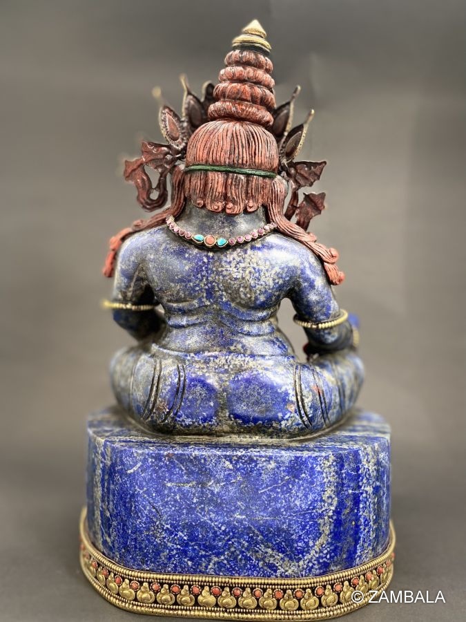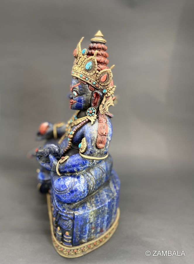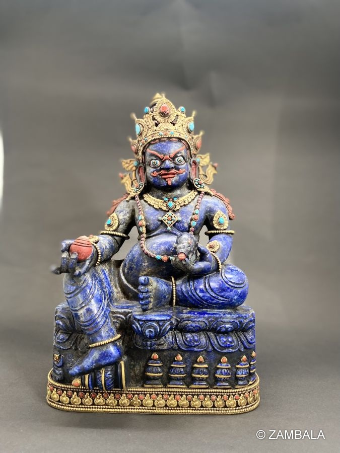 - **Making the giving mudra with the right hand**: symbolizes his willingness to bestow wealth on all living beings.