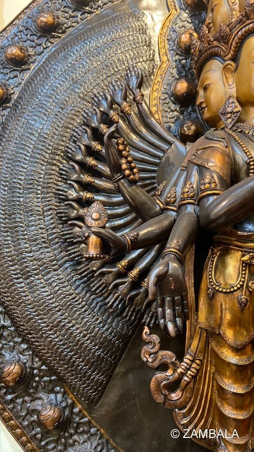 Thousand-Armed Guanyin, also known as the Thousand-Armed Thousand-Eyed Guanyin Bodhisattva, is one of the important Bodhisattvas in Buddhism, symbolizing compassion and wisdom. Her image has a thousand hands, and there is an eye in each palm, representing omniscience and omniscience, and the ability to sense all the pain in the world and lend a helping hand.