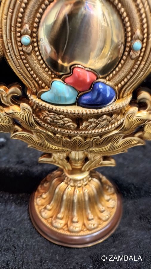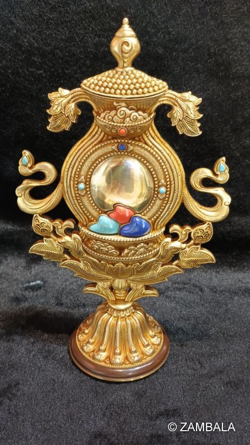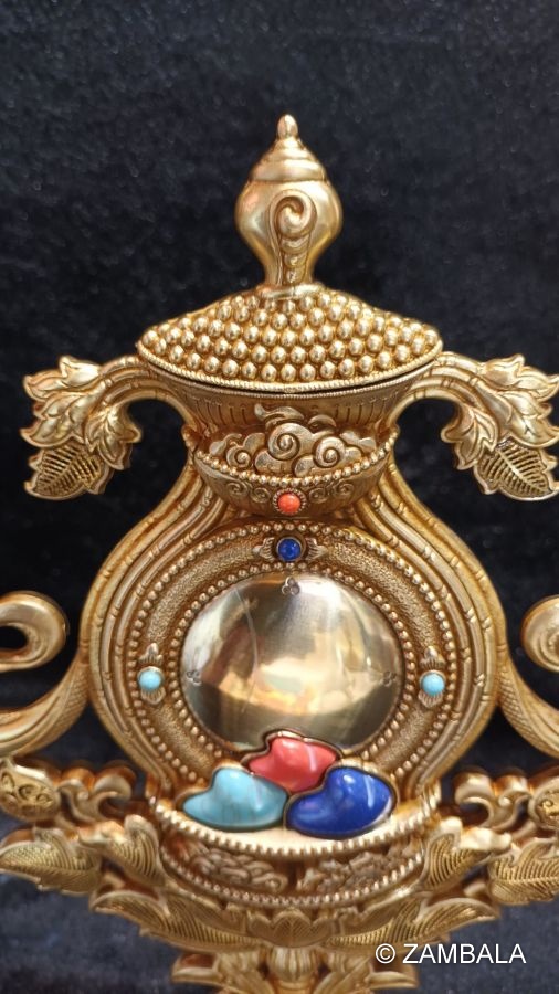 4. **Treasure bottle**: It symbolizes the perfection of wisdom and blessings, and represents that practitioners can obtain endless Dharma wealth and blessings.
