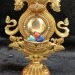 Material: Copper. Gold plated. Wooden base.