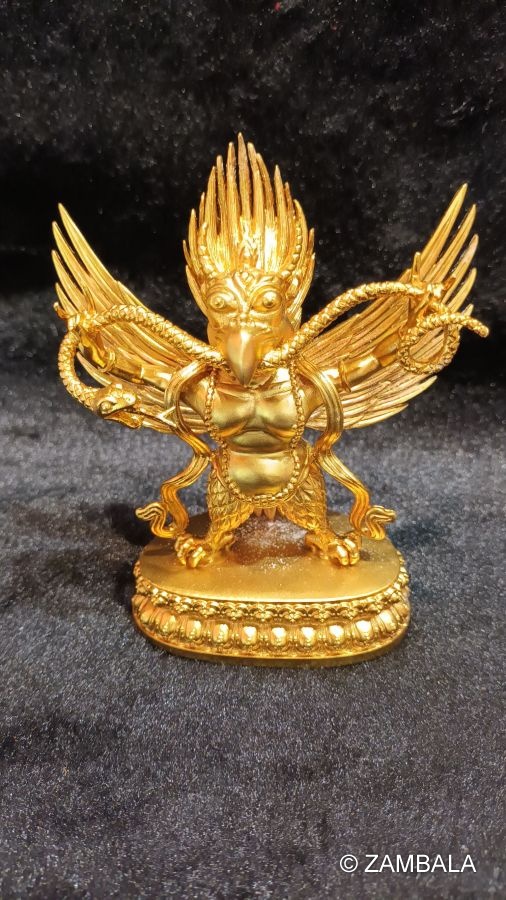 In Tibetan Buddhism, the Golden-winged Bird (Garuda, Sanskrit: Garuḍa) is a powerful guardian deity, one of the Eight Great Devas, symbolizing power, bravery and the removal of obstacles. Its image originates from Indian mythology and has evolved into a sacred being that protects Buddhism in Buddhist tradition.