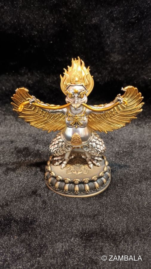The Garuda is not only a sacred symbol in Tibetan Buddhism, but also a practical being used in spiritual practice and protection. |