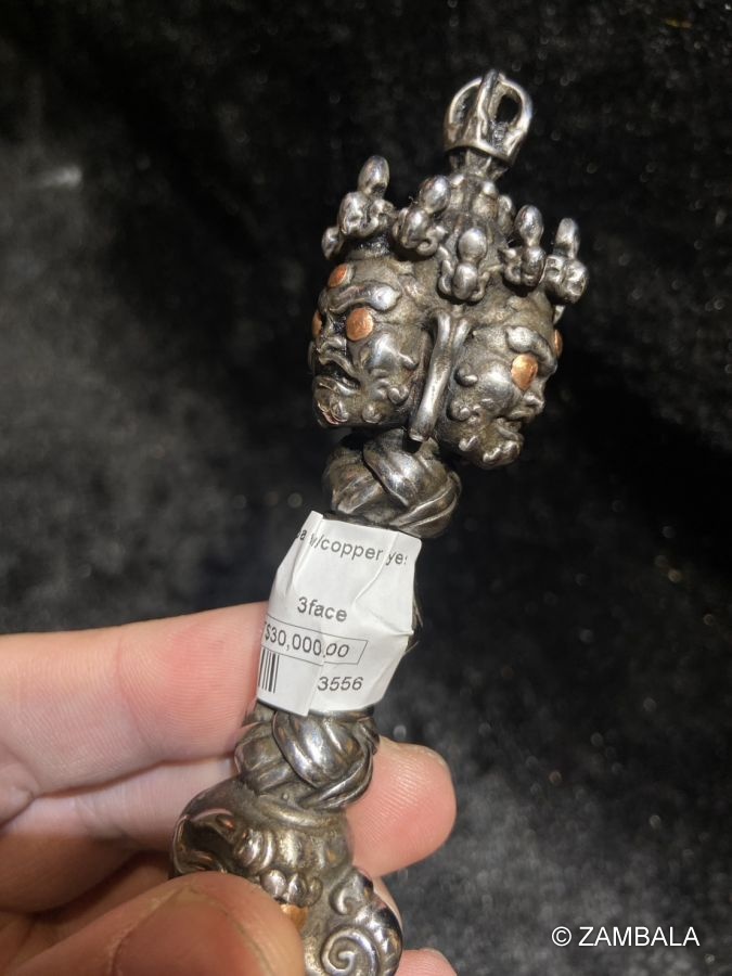 - The three-faced vajra is usually made of metal (such as copper, iron, silver) or wood. The body of the vajra is in the shape of a triangular pyramid, with three heads on the top or in the middle (often the wrathful form of Vajrabhairava). Each face may show a different expression (such as anger, silence or joy), symbolizing different levels of subjugation power.