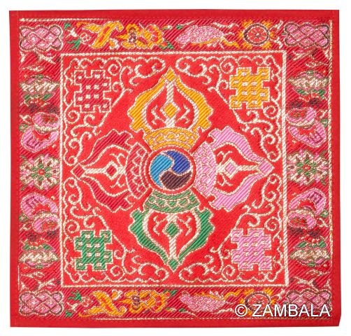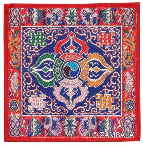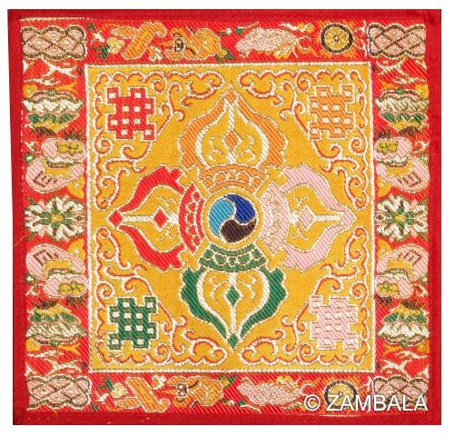 Double Dorje 8-Auspicious Symbols brocade can be used for bell & dorjee, stupas, statues etc.
