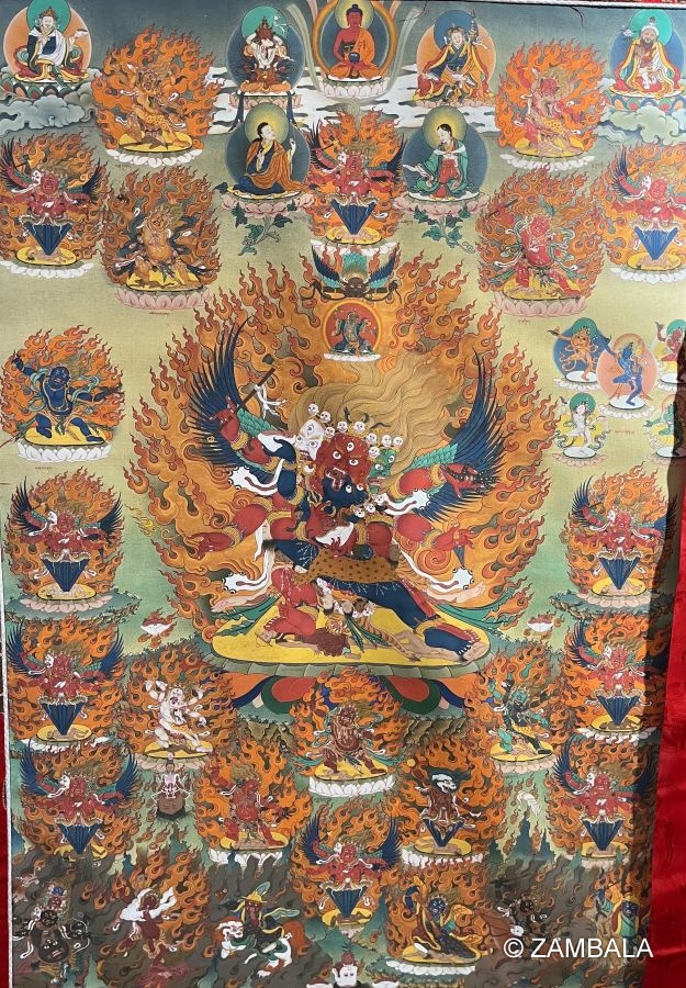 * Many great Tibetan masters or incarnations of the deities can also be seen on the left and right sides, such as Vajrapani Bodhisattva and Vajrayogini.