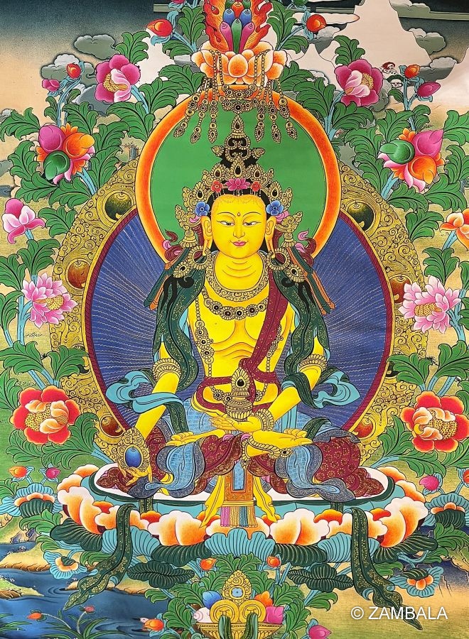 - **Cultural Influence**: The image of the Buddha of Longevity appears widely in Tibetan Buddhist art, such as thangkas, Buddha statues, etc., often as amulets or objects of worship.