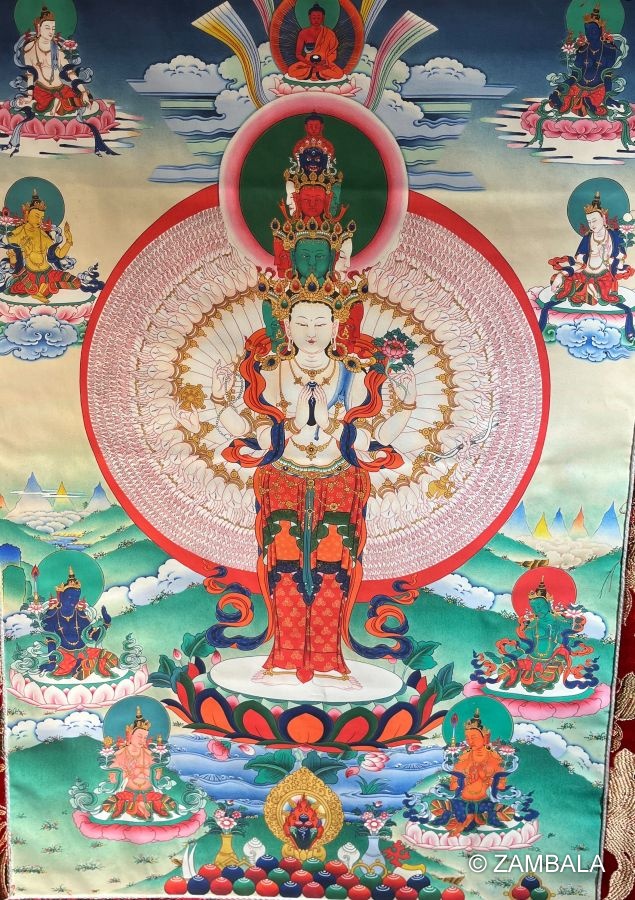 - Thangkas or statues of the Thousand-armed Avalokitesvara are often enshrined in temples as objects of worship and blessing for believers.