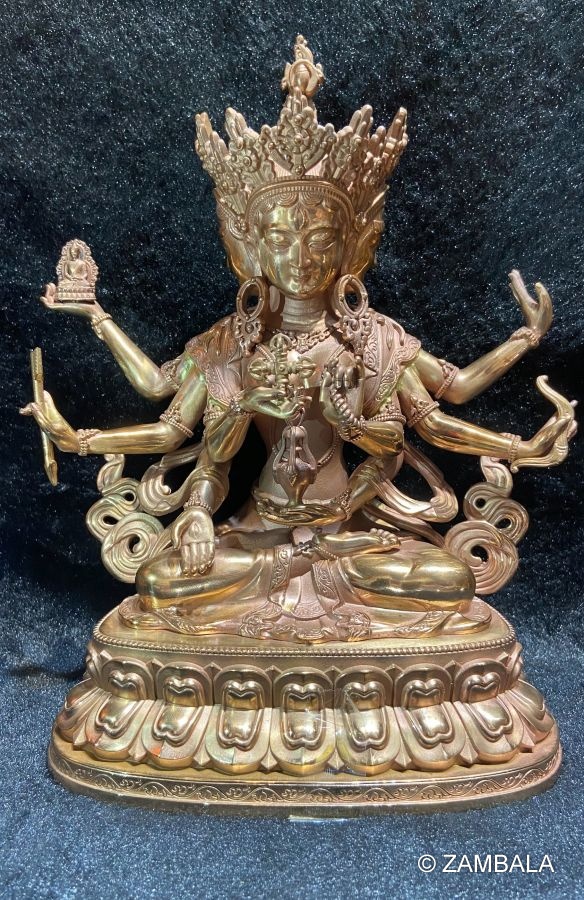 Vajrayogini is considered a manifestation of the crown of Vairocana Buddha or Shakyamuni Buddha. Her image and teachings gradually took shape during late Indian Buddhism (c. 500-1200 AD) and were introduced to Tibet through centers of learning such as Nalanda Monastery. The inclusion of relevant texts in the Kangyur and Tengyur, the Tibetan Buddhist classics, further solidified her status.