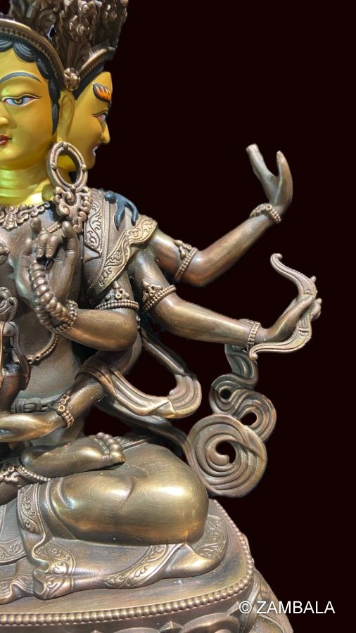 - **Offerings and Visualization**: When practicing the practice of Vajrayogini, practitioners visualize her image (white body, three faces, eight arms, crowned with a five-petaled crown) and offer mandala plates, incense, flowers, and lamps to strengthen their connection with the deity. In this visualization, the white front represents dispelling disasters and relieving difficulties, the yellow right side represents increasing blessings and longevity, and the blue left side, with its wrathful aspect, represents subduing the evil realms.