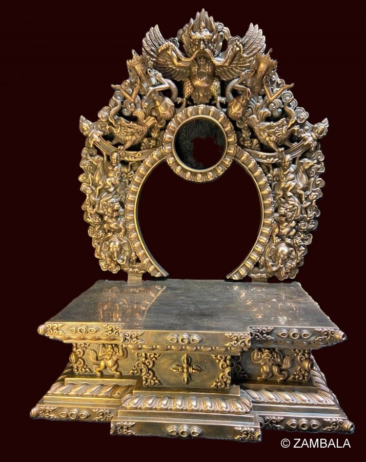 - Animal totems on the pedestal (such as lions, elephants, horses, peacocks, and garudas) represent power, wisdom, or protection. These animals are associated with specific deities or teachings in Tibetan Buddhism, further strengthening the statue's authority.