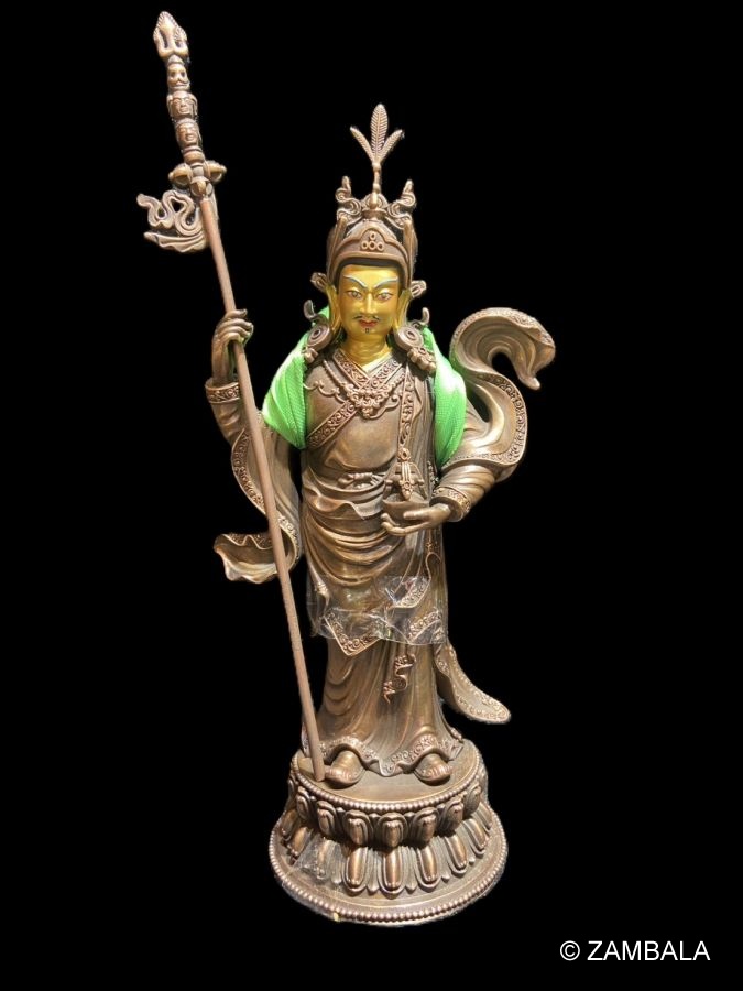 - **Vajra and Lotus**: Guru Rinpoche is often depicted holding a vajra (symbolizing the destruction of ignorance) and a lotus (symbolizing purity), which have become symbols of practice and offerings by believers.