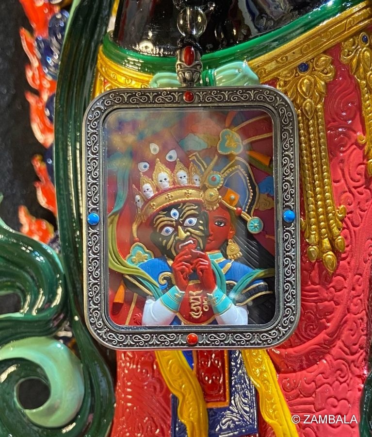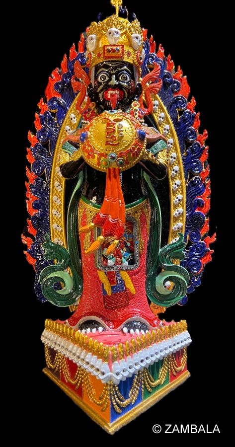 Material: Cast iron. Painted. Base can hold sacred objects. (Includes one painted amulet.)
