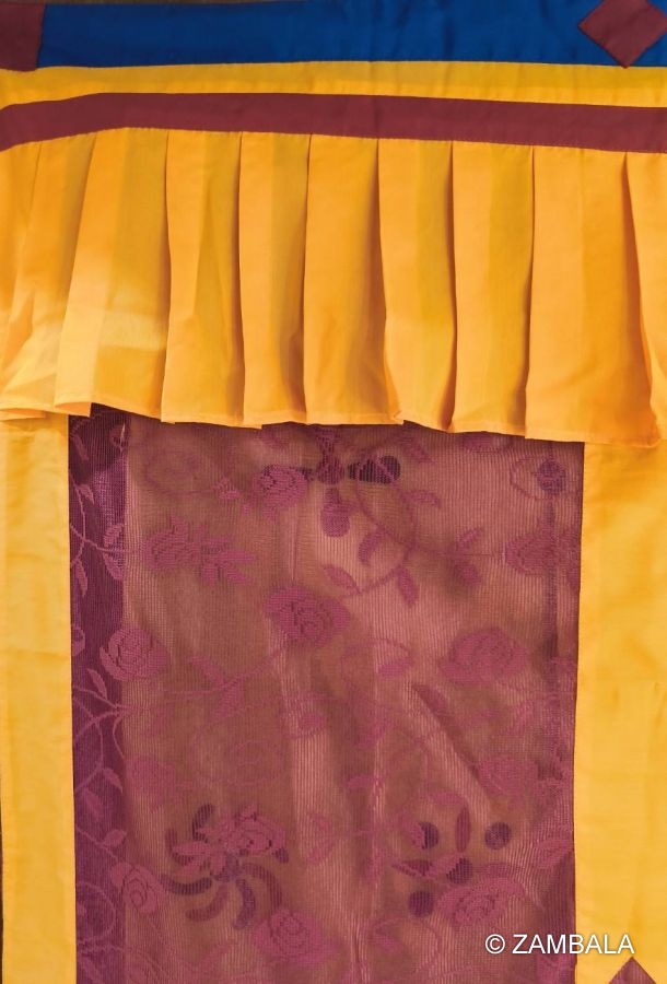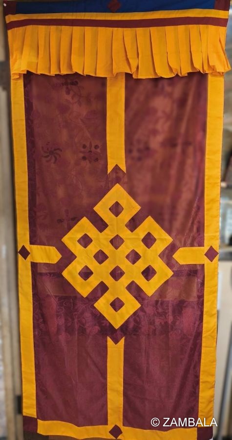 In Buddhist rituals, the auspicious knot plays an important symbolic and decorative role. It is often featured on monks' clothing, temple ornaments, ritual instruments, thangkas (Tibetan Buddhist scroll paintings), murals in temples, and offerings, adding auspiciousness and conveying profound Buddhist teachings. Specifically: