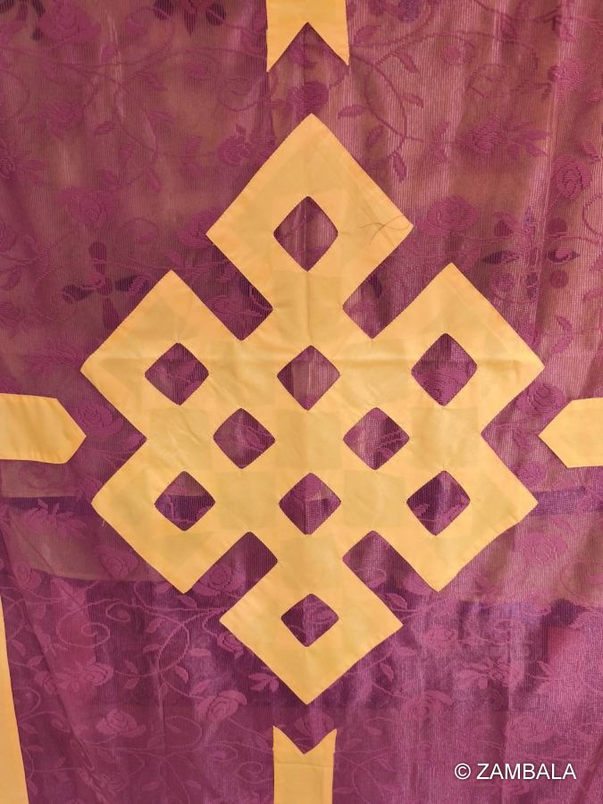 - **Offerings and Blessings**: In Tibetan Buddhist rituals, the Eight Auspicious Symbols (including the auspicious knot) are used to offer to the guru and the Three Jewels (Buddha, Dharma, and Sangha), swiftly perfecting the two resources of merit and wisdom. For example, during ceremonies, empowerments, and offerings, believers use flags, fabrics, or vessels emblazoned with the auspicious knot to symbolize respect for the Buddha and to pray for good fortune and peace.